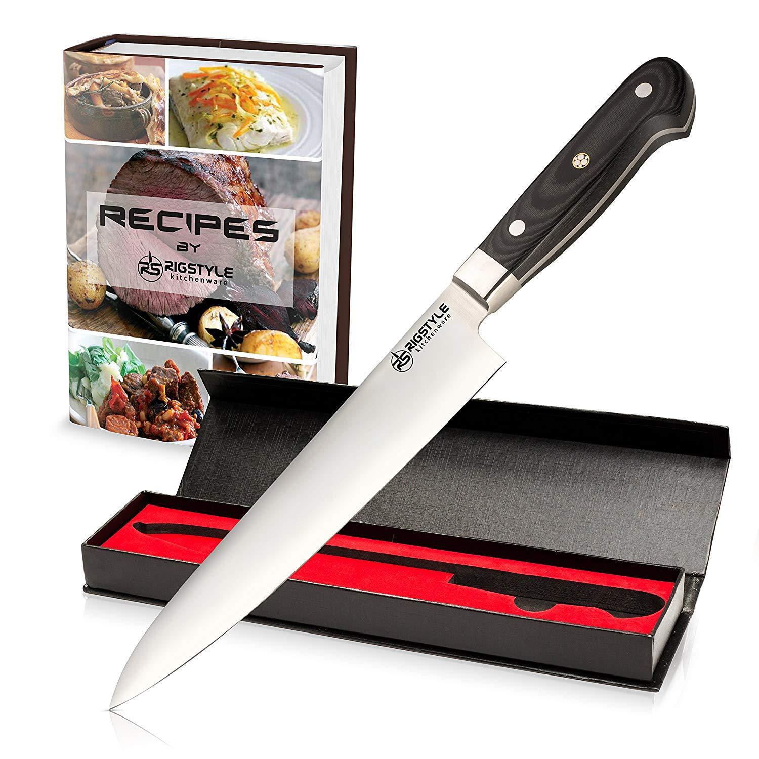 RIGSTYLE German Chef Knife 8 inch, High Carbon Stainless Steel, Sharp Blade with Ergonomic Handle for Professional Restaurants & Home Kitchens, Meat, Fish, Chicken & Vegetables Chopper, with Gift Box