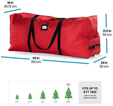 Rolling Large Christmas Tree Storage Bag - Fits Upto 9 ft. Artificial Disassembled Trees, Durable Handles & Wheels for Easy Carrying and Transport by ZOBER
