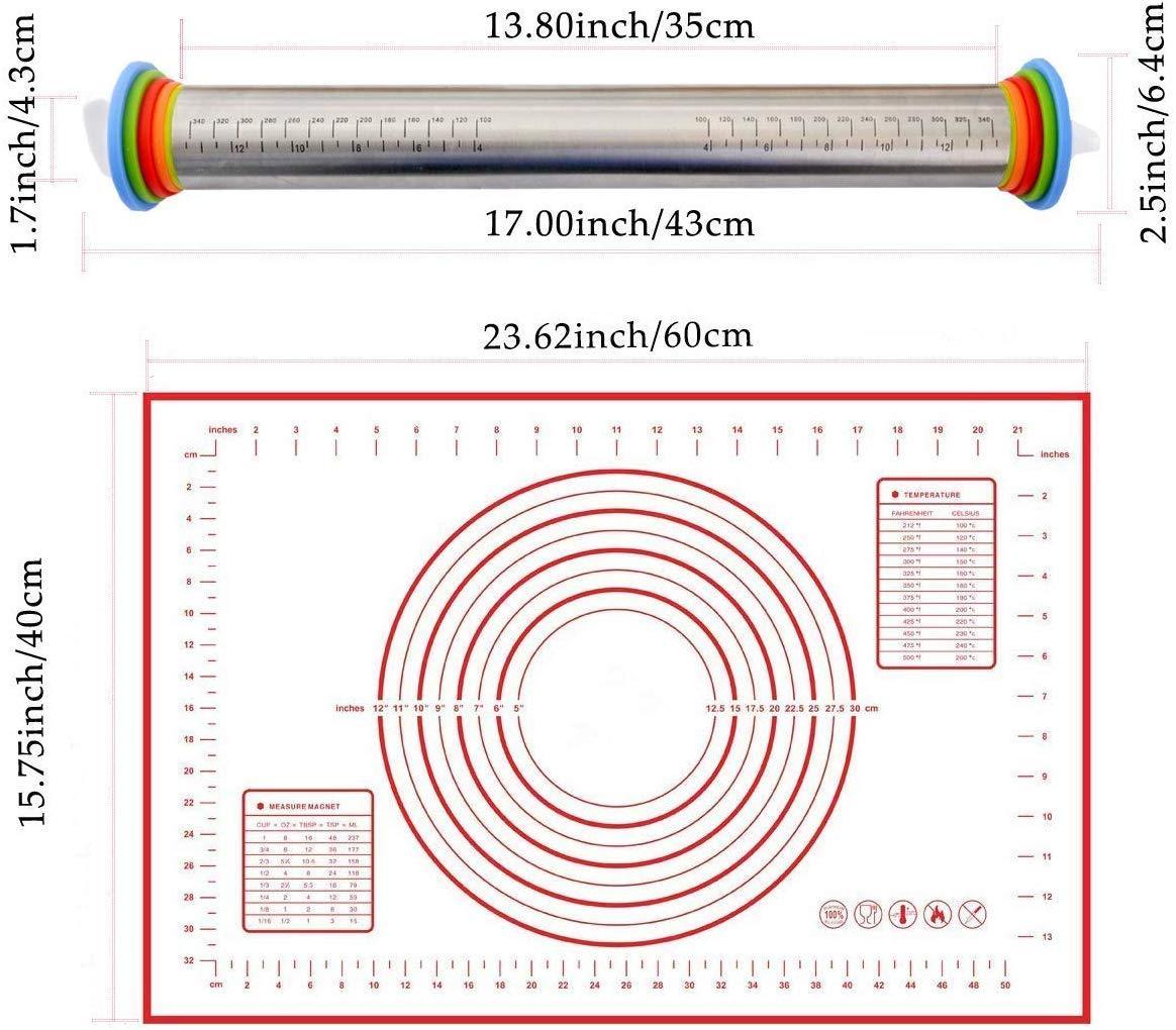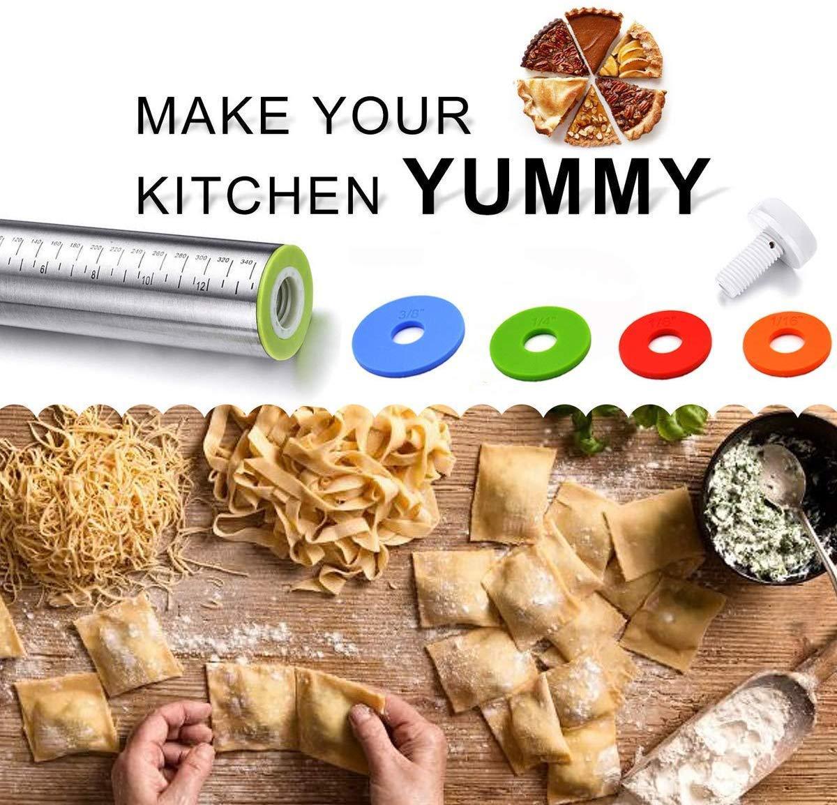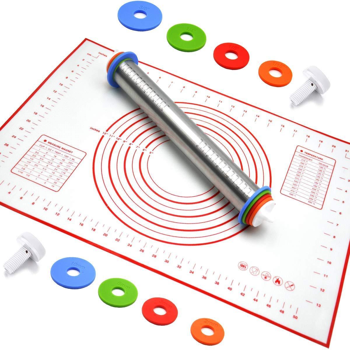 Rolling Pin, Adjustable Stainless Steel Rolling Pin with 4 Removable Adjustable Thickness Ring and Pastry Mat, Dedicated for Baking Dough, Pizza, Pastries, Pie, Pasta and Cookies - Non Stick by JOFUYU