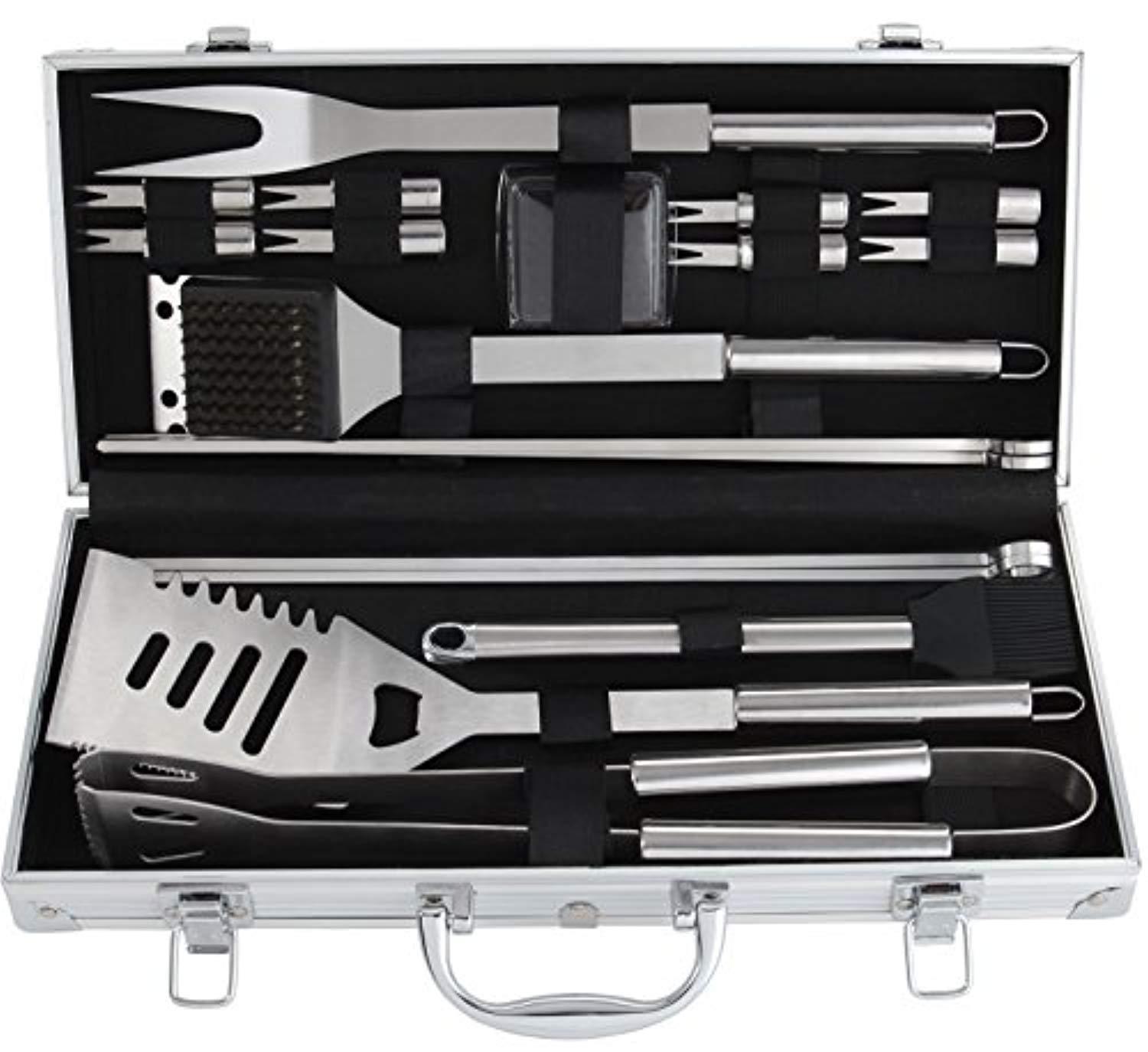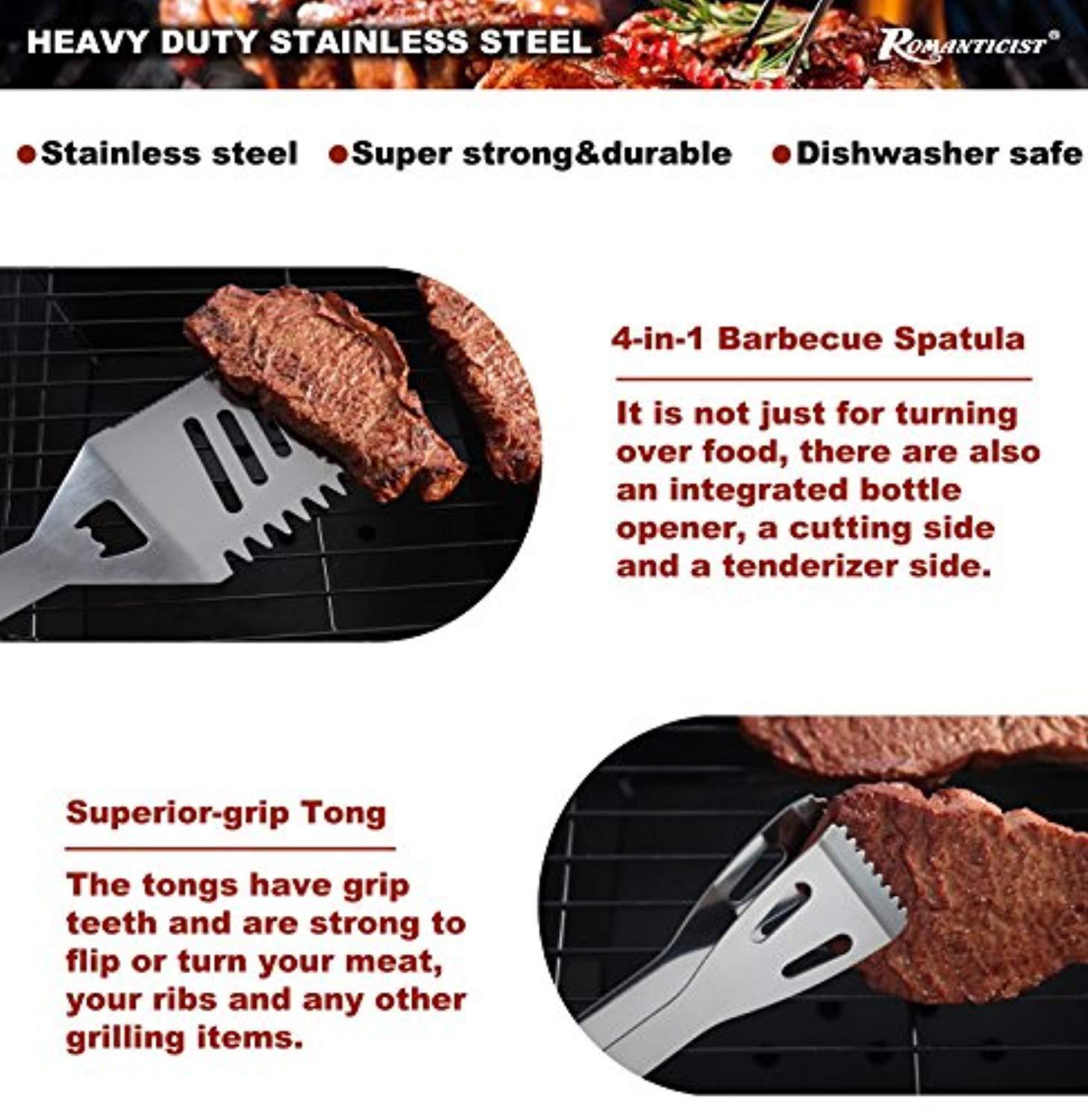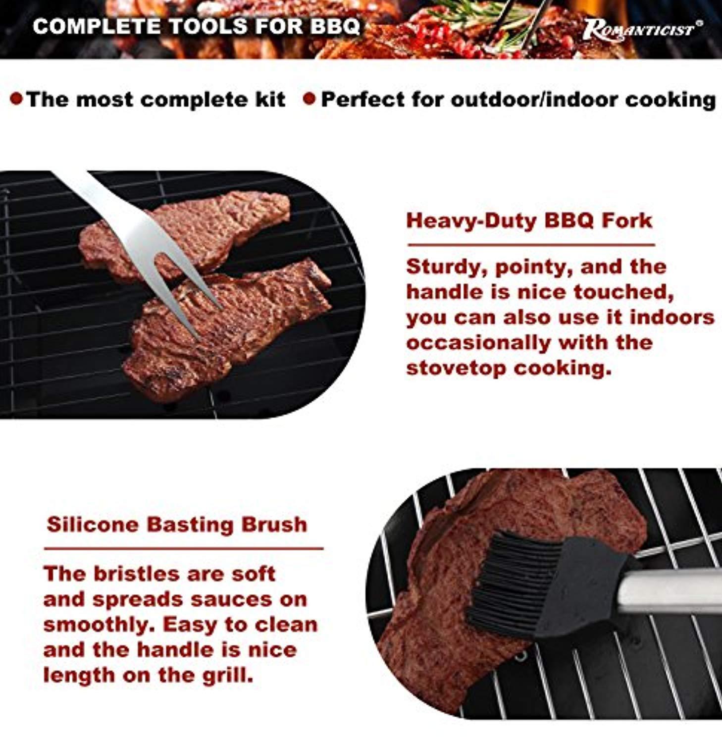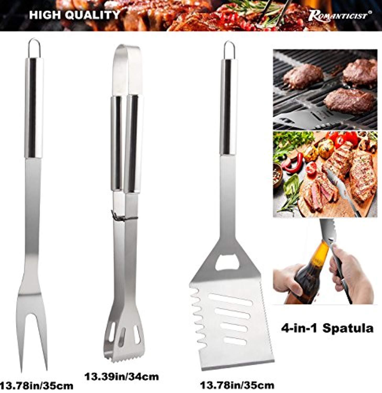ROMANTICIST 19Pc Heavy Duty Stainless Steel BBQ Grill Tool Accessories Set - Outdoor Camping Barbecue Grilling Utensils Gift Kit with Aluminum Case for Men Dad