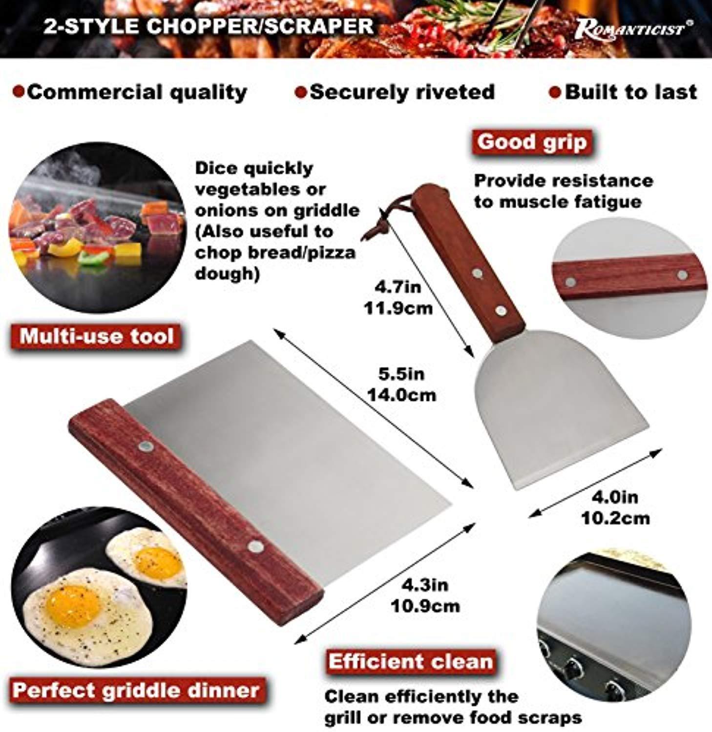 ROMANTICIST 8Pc BBQ Griddle Accessories Kit - Heavy Duty Stainless Steel Professional Griddle Tool Set - Great for Flat Top Cooking Camping Tailgating