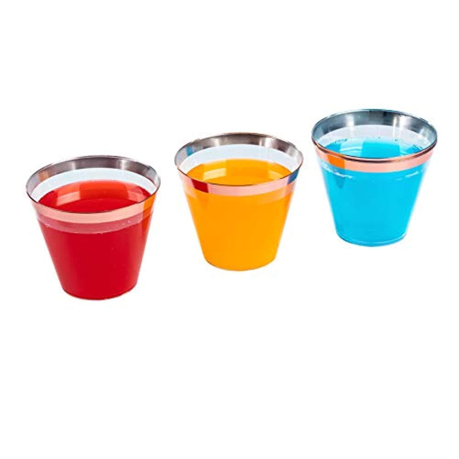 ✅ VERSATILE USE: The elegant rose gold disposable cups add glitter to almost anywhere in your trendy party supplies. Paired with goldrimmed plates, champagne glasses, wine tumblers, dinner table decorations or dessert cups