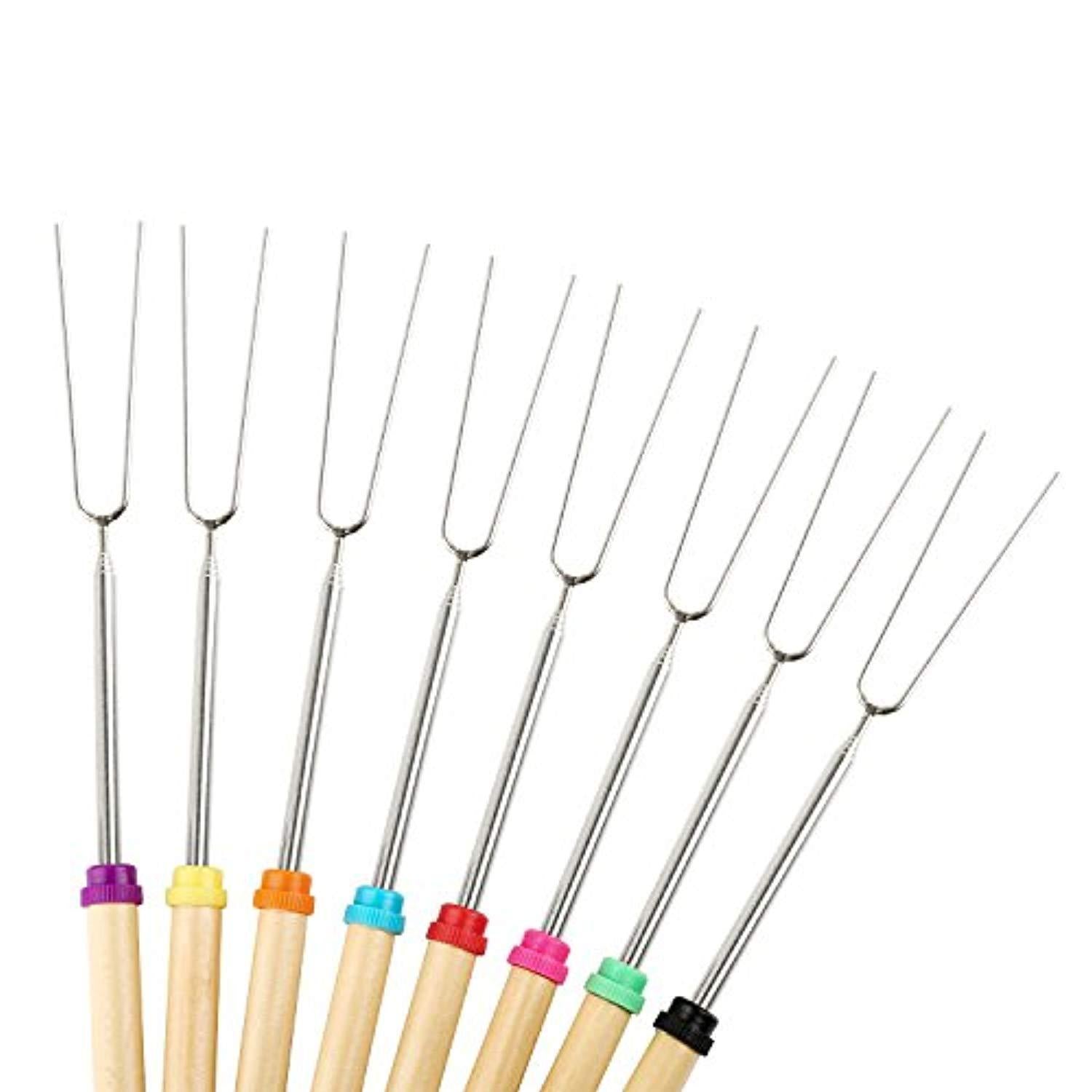 Sachelio Marshmallows BBQ Sticks Stainless Steel Retractable Wood Handle 32-inch Portable Barbecue fork(Set of 8)