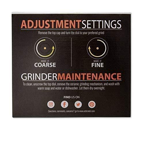 5 GRADE ADJUSTABLE CERAMIC GRINDER : Our Salt and Pepper Shakers have a larger heavy duty ceramic rotor than competitors. Just twist the knob at the top of each salt and pepper shaker to set your desired coarseness of salt, pepper, or spice. An AUTHENTIC HOME EC salt and pepper mill pair and funnel arrive in BRANDED PACKAGING with a GIFT TRAY to protect your salt and pepper grinder mills! Chef Ebook will be emailed.