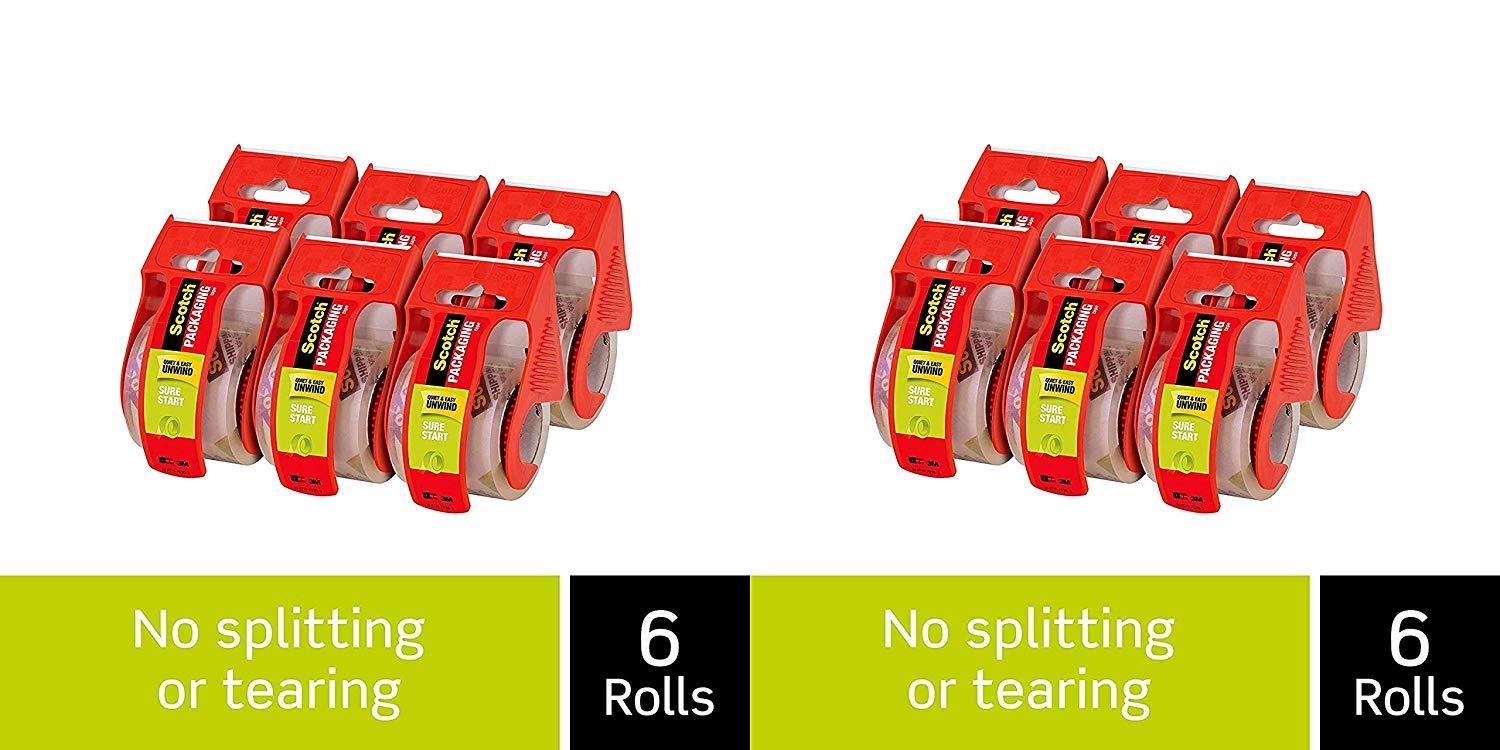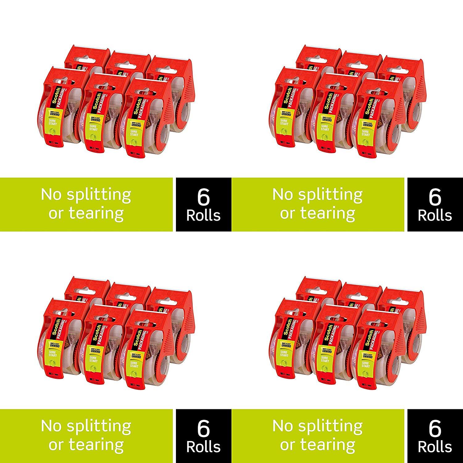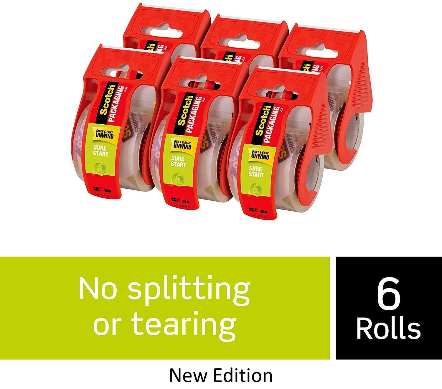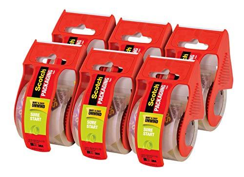Scotch Sure Start Packaging Tape, 2 Inches x 22.2 Yards, 2-Inch Core, Clear, 6/Pack, (145-6)