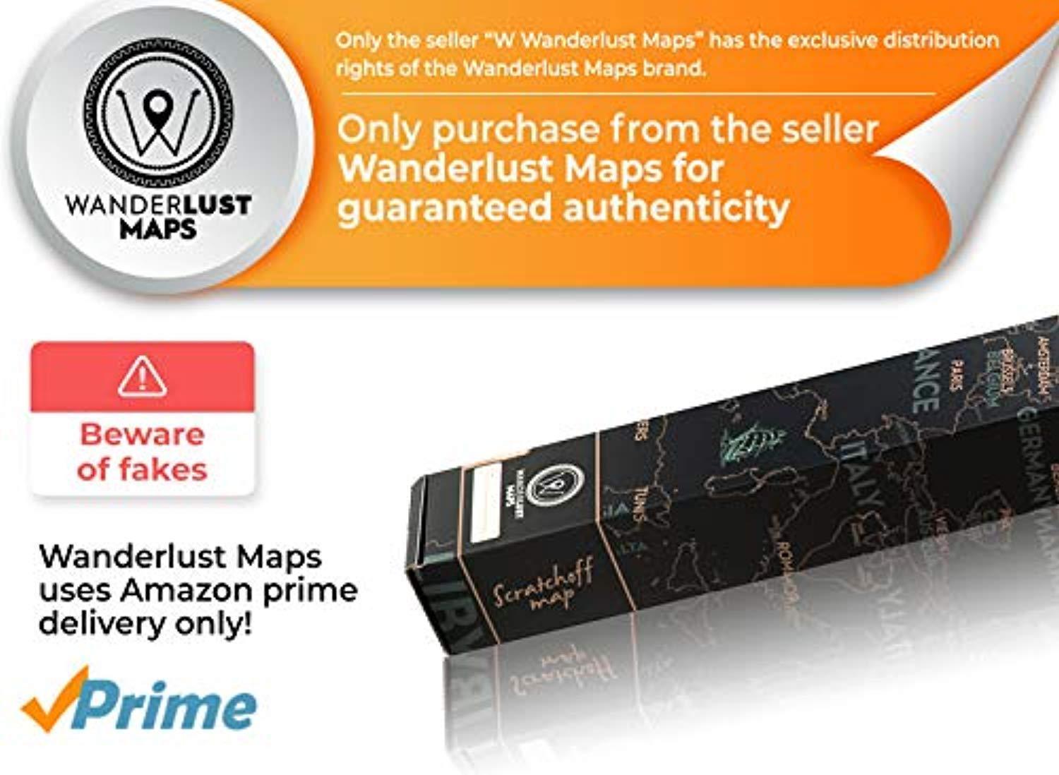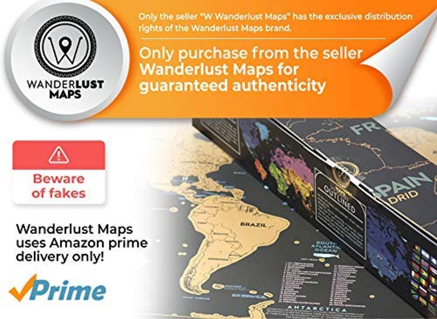 Scratch Off World Map + Premium Scratch Off USA Map - Deluxe Tube Can Be Gift Messaged and Includes Precision Scratch Tool and Travel Memory Stickers, by Wanderlust Maps