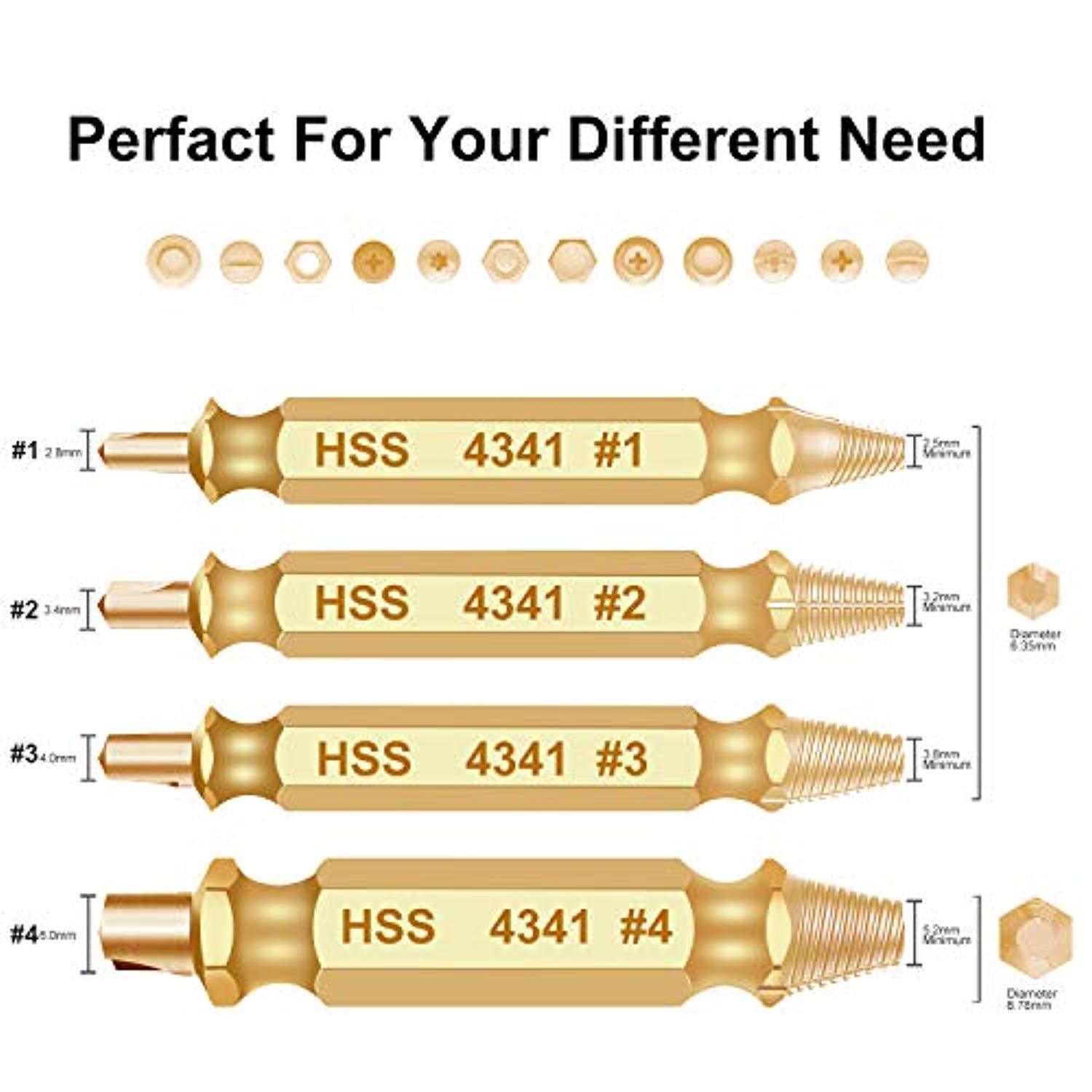 Screw Extractor Set 4 PCS for Damaged Screw Remove and Stripped by Kuenuilr
