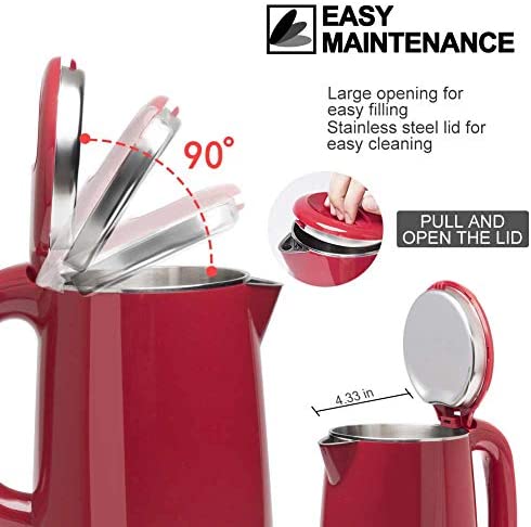 Secura Stainless Steel Double Wall Electric Kettle Water Heater for Tea Coffee w/Auto Shut-Off and Boil-Dry Protection, 1.0L (Black)