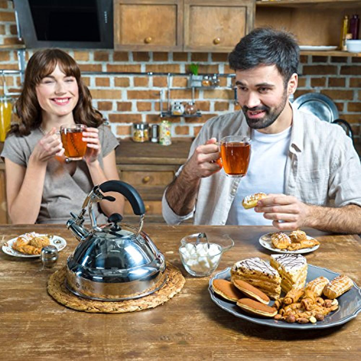 Select Gorgeous Tea Kettle – Whistling I Fastest Boiling Mirror Finish Surgical Stainless Steel Teapot - 11 cup