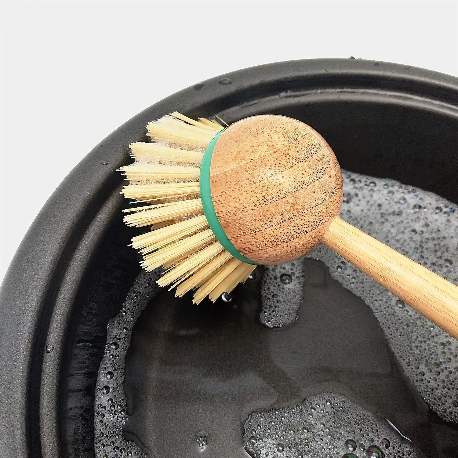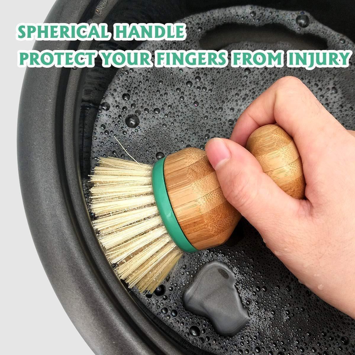 Set of 3 Pieces Bamboo Scrub Brush Dish Scrubber Household Cleaning Sink Wet Scrubber Brushes,Stiff Bristles, for Kitchen Pan Pot Dish Vegetables Cleaning(2 Mini and 1 Long Handle)