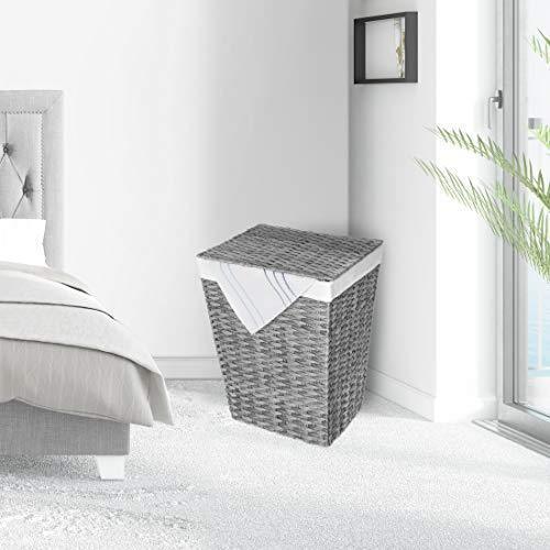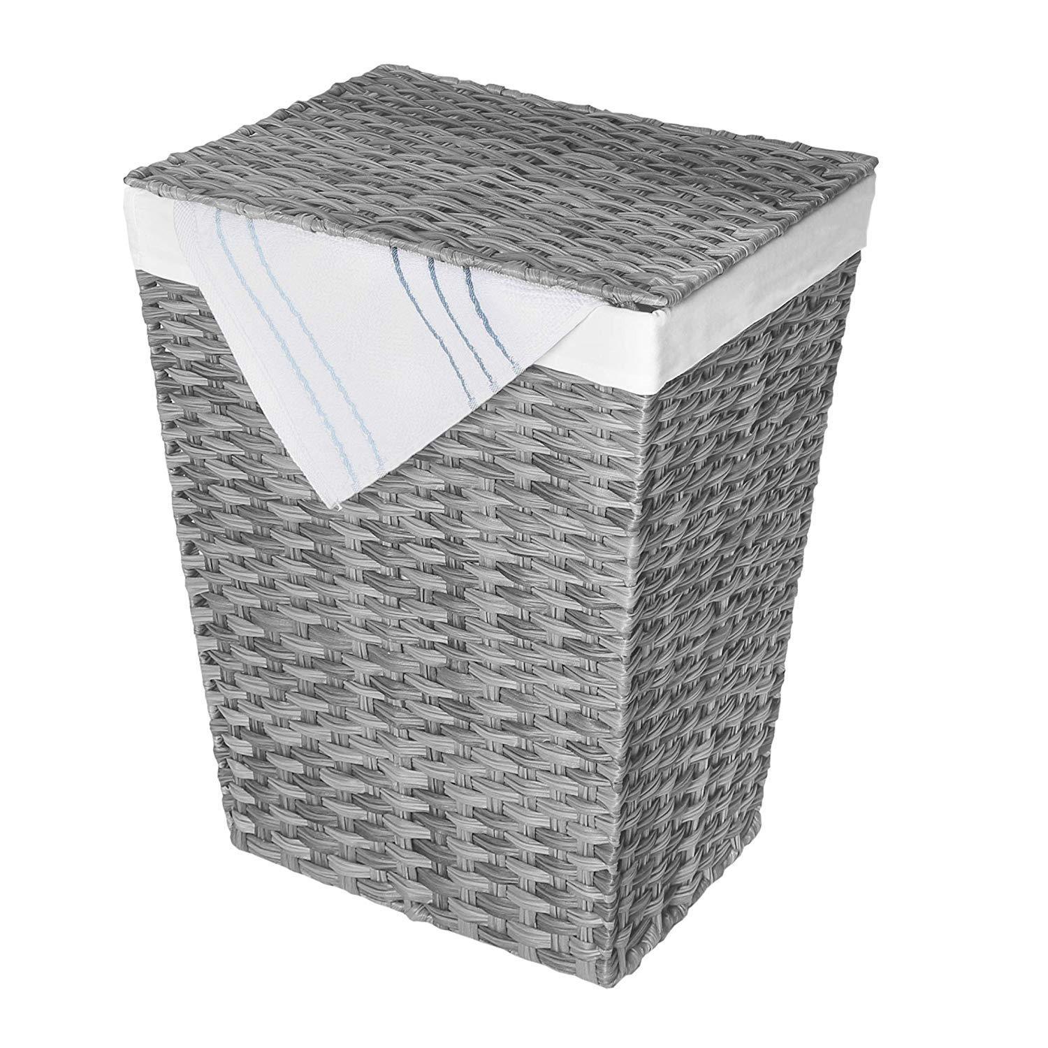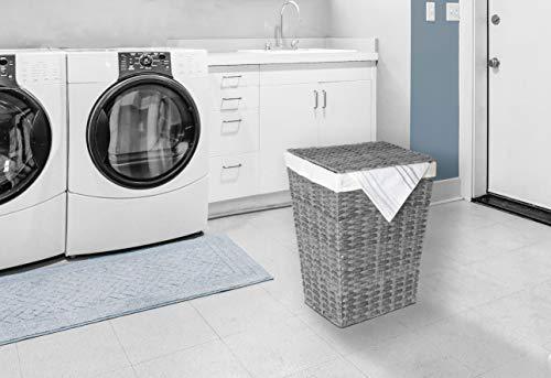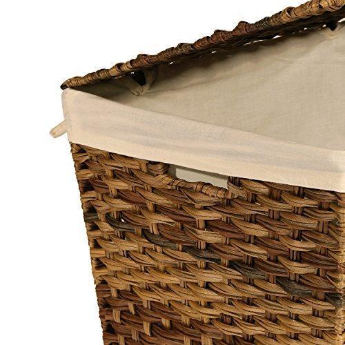 Handwoven Natural Style - Decoratively woven polyethylene strands wrap around a steel frame to create a cool and contemporary hamper that fits in with any bedroom, bathroom or laundry room décor Lidded Hamper - A hinged lid keeps dirty clothes out of sight and unpleasant smells contained Heavy-Duty Removable Bag - Includes one machine-washable polyester canvas laundry bag; throw it in with the rest of your soiled linens when ready Durable Flexible Quality - Woven from tough, flexible, and water-resistant polyethylene strands that stretch under stress instead of cracking like natural hyacinth, willow, reed, or wicker materials Dimensions - 13" D x 18" W x 21.5" H