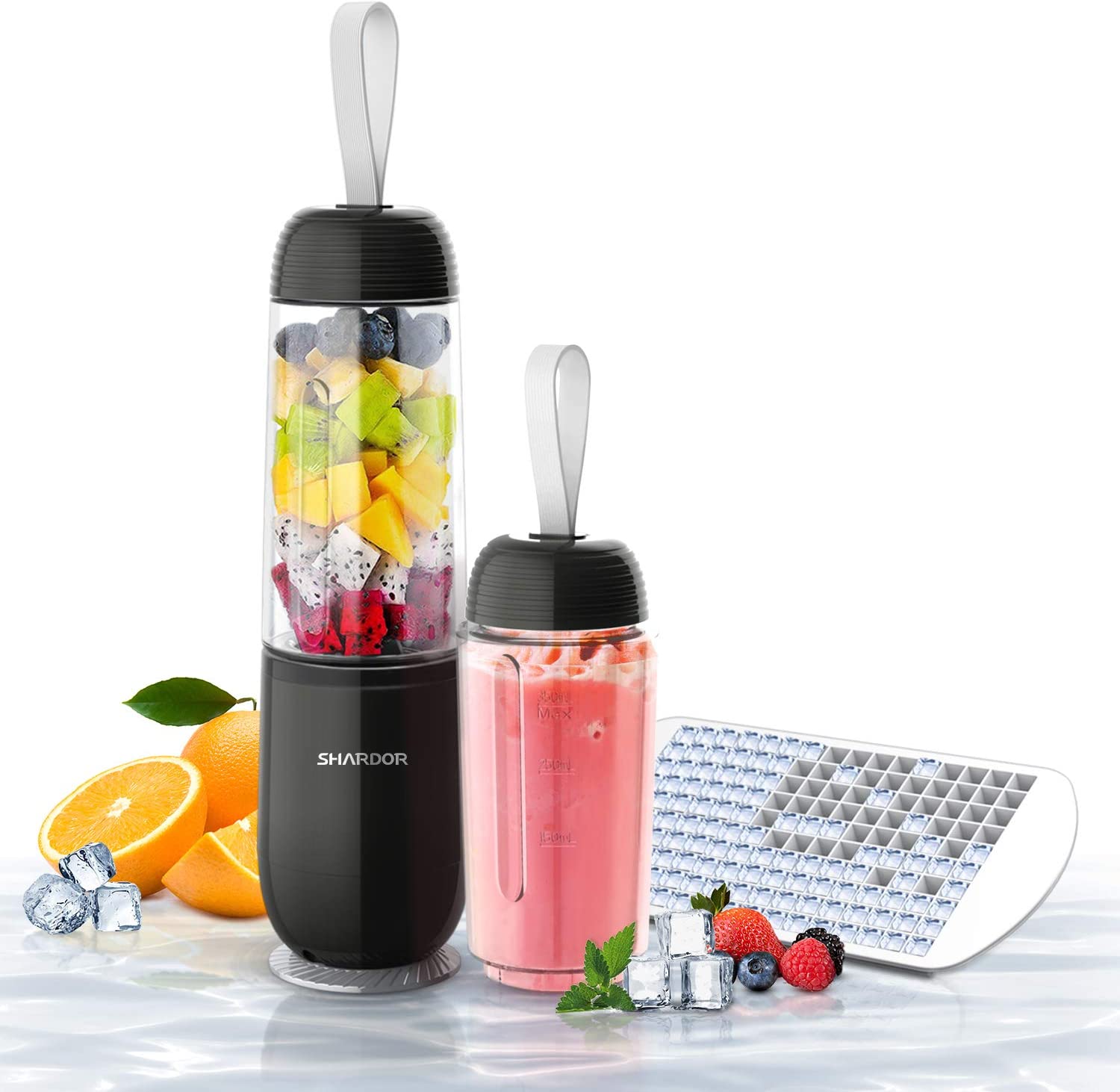 SHARDOR Personal Smoothie Blender for Shakes Juice with 2 Sport Bottles 1 Ice Cube Tray, Black