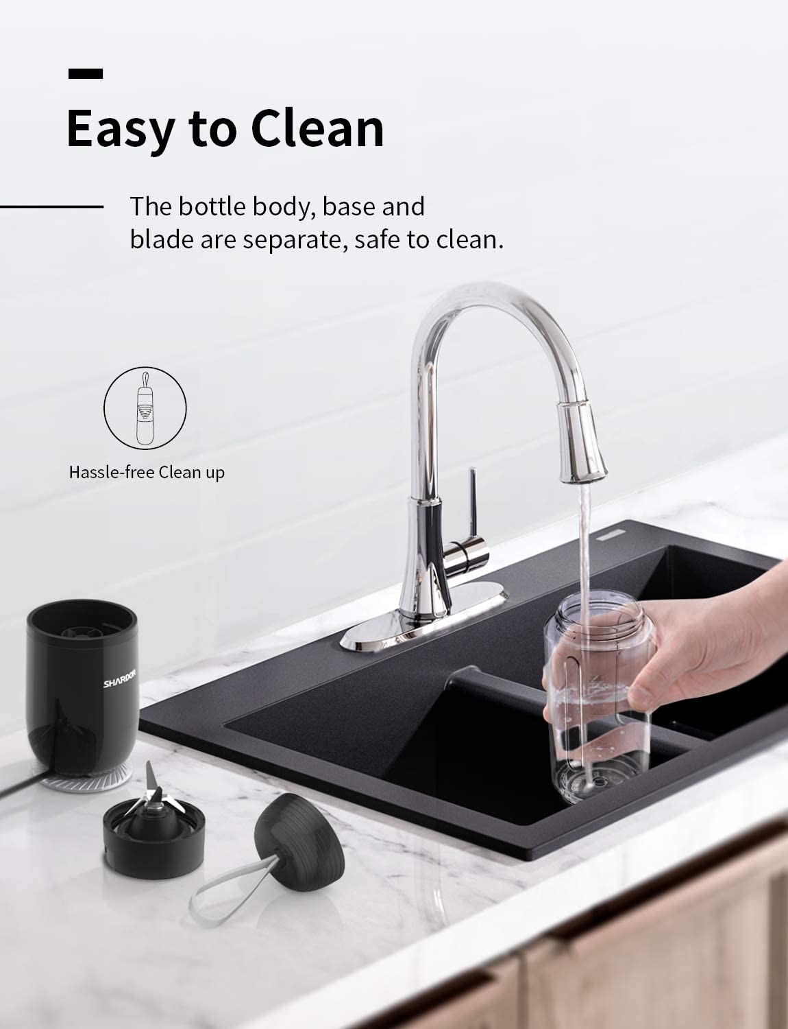 SHARDOR Portable Smoothie Blender Personal Blender for Shakes Juice with 2 Bottles 1 Ice Cube Tray, Black