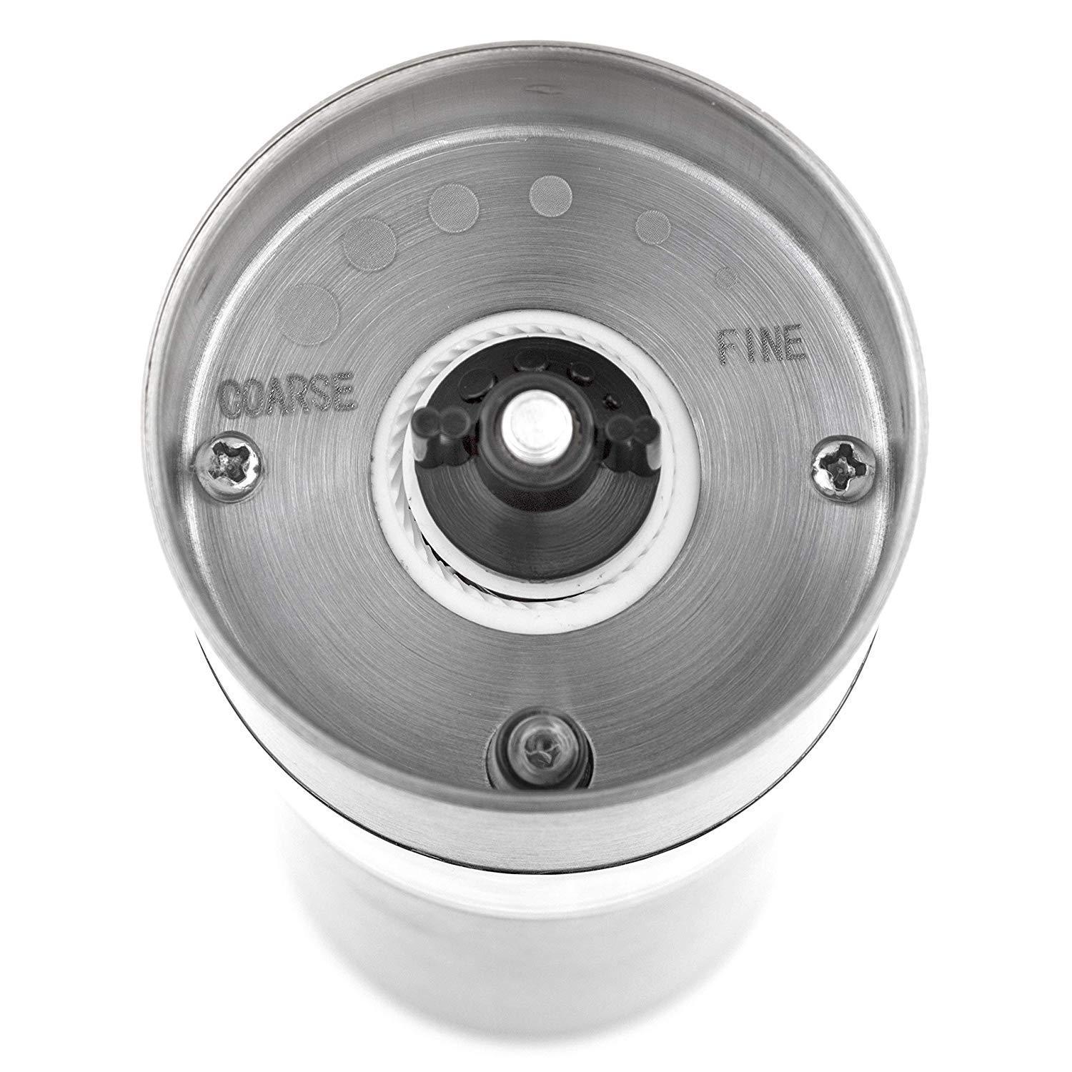 Simple Coarseness Settings: Achieve the perfect level of coarse or fine ingredients in seconds with a simple twist of our coarseness knob on the bottom of each mill which makes for the perfect amount of salt, pepper or other spices. Premium Metal Mill Stand; Our mill sets come with a strong yet elegant metal stand so your products can easily be moved around and stored without risking the products falling off the counter (upgrade from flat plastic stand) and a free cleaning brush. 100% Satisfaction Guarantee; Your purchase is backed by our manufacturer 30-day money back guarantee and lifetime support to make your purchase risk free.