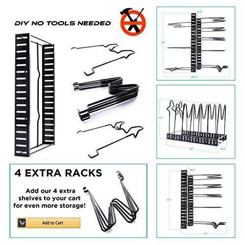 SKATCO Pot Organizer Rack – Metal Pots & Pans Organizer – Pantry & Kitchen Cabinet Organizer – Heavy Duty Lids, Dishes, Pots and Pans Organizer – Horizontal & Vertical Pan Rack with 3 Use Methods