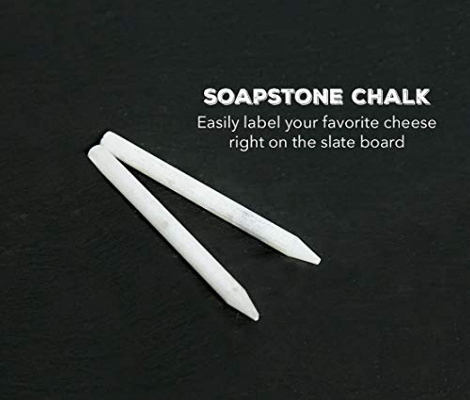 Slate Cheese Board - 7 pc Serving Tray Set 16"x12" Large - Stainless Steel Handles - Soapstone Chalk - 4 Cheese Knives - Foam Protective Feet by Proper Goods
