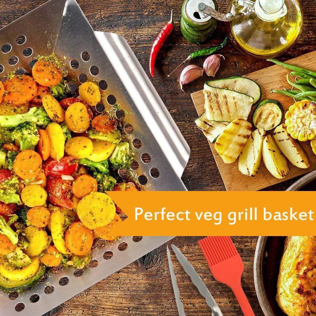 SMAID Vegetable Grill Basket - Large Stainless Steel Veg Grill Basket Works On Gas Wok Or Smoker-BBQ Accessories Stir Fry Grilling Fish, Seafood, Kabob, Pizza, Veggies & Fruit-Outdoor Campfire Use