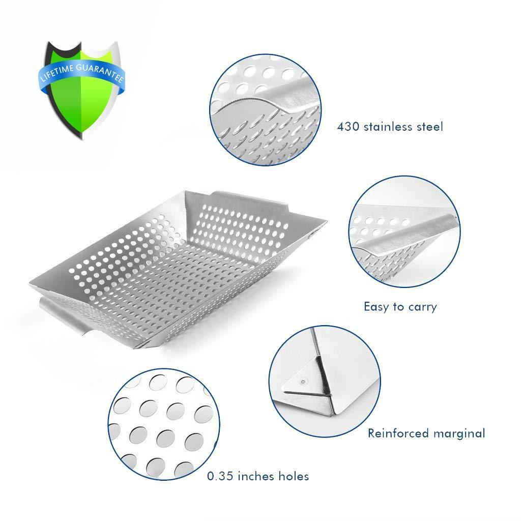 SMAID Vegetable Grill Basket - Large Stainless Steel Veg Grill Basket Works On Gas Wok Or Smoker-BBQ Accessories Stir Fry Grilling Fish, Seafood, Kabob, Pizza, Veggies & Fruit-Outdoor Campfire Use
