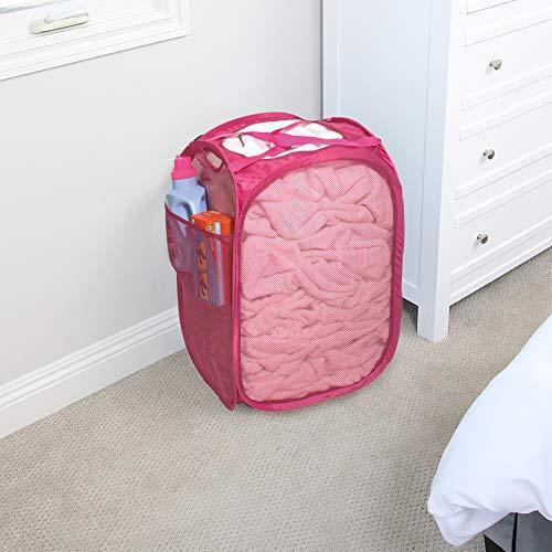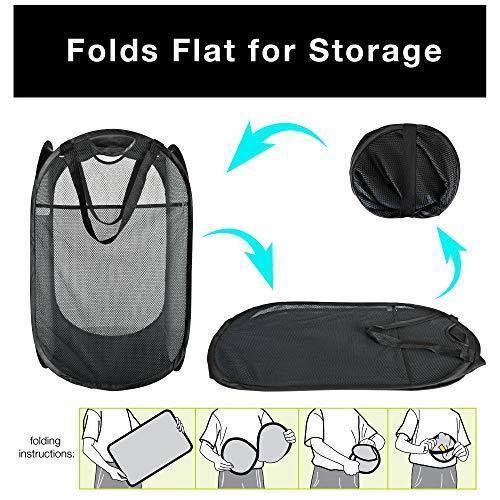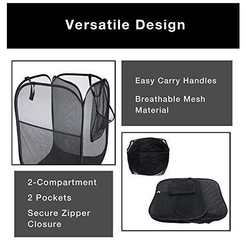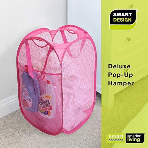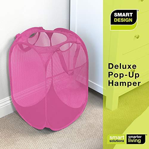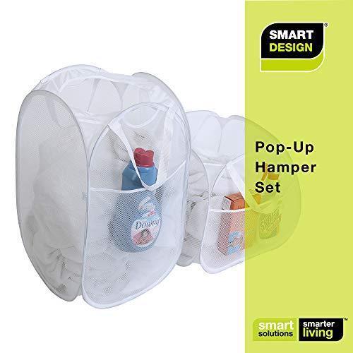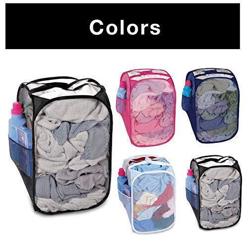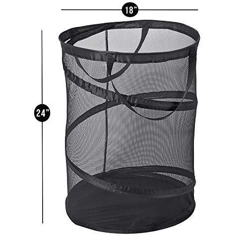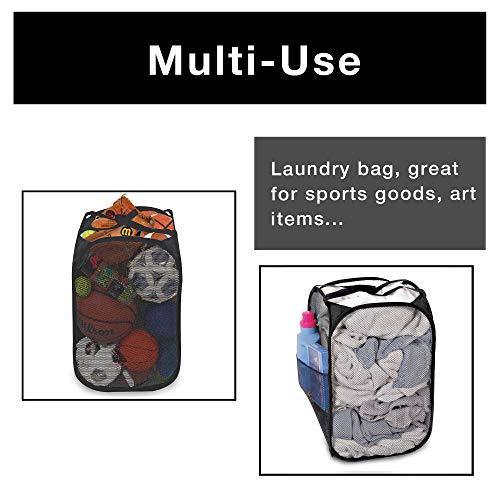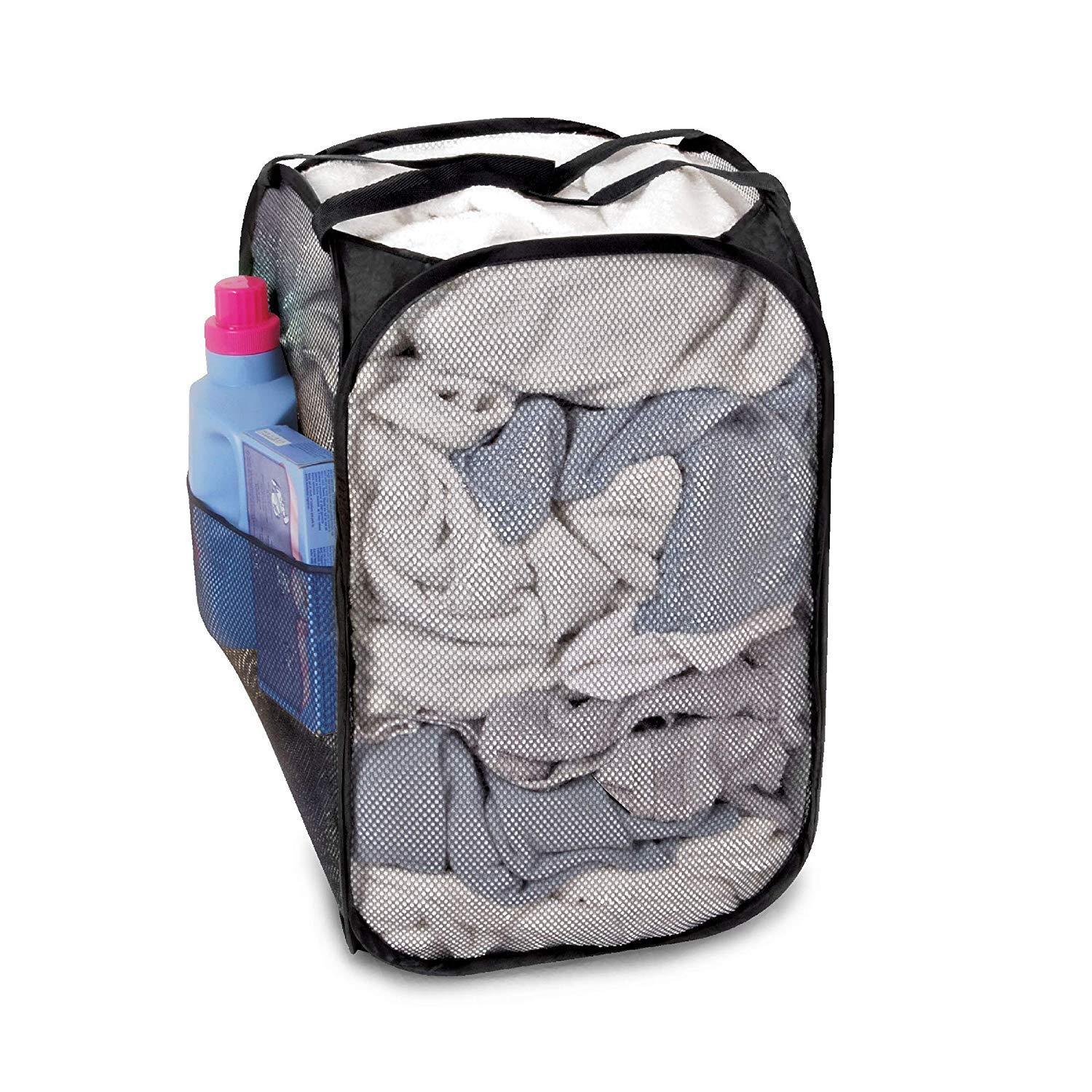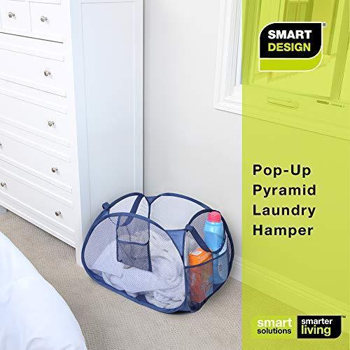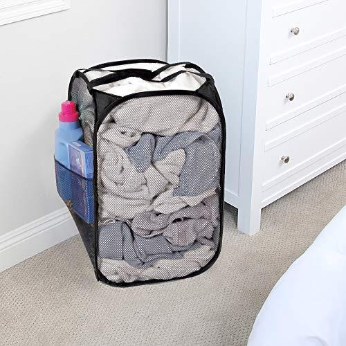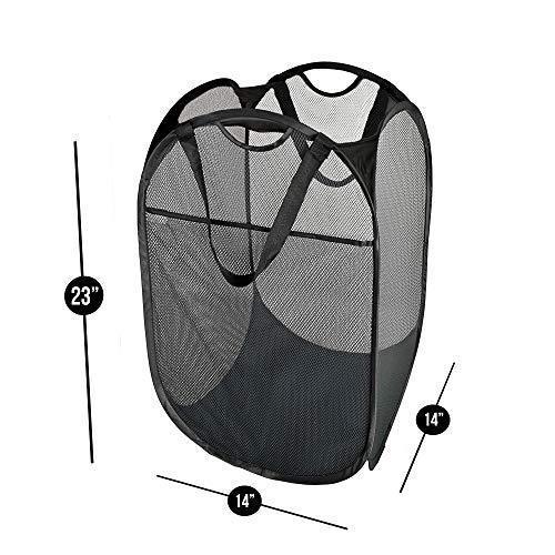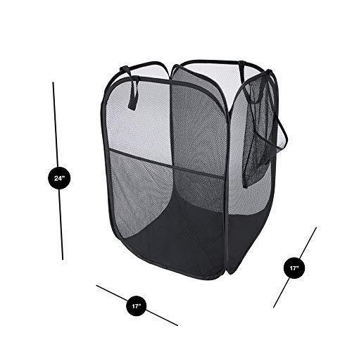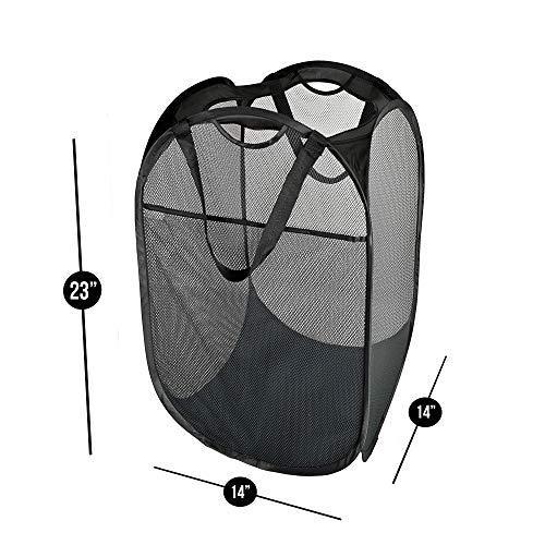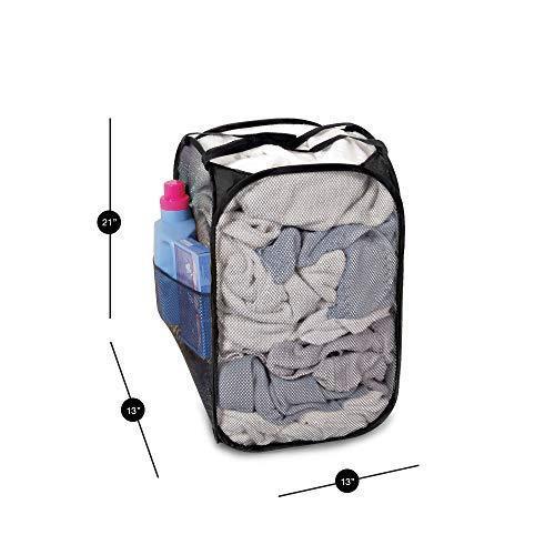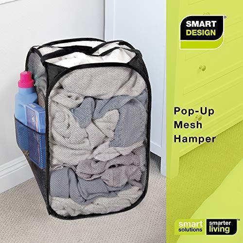 Smart Design Deluxe Mesh Pop Up Square Laundry Hamper w/ Side Pocket & Handles - VentilAir Fabric Collapsible Design - for Clothes & Laundry - Home - (Holds 2 Loads) (14 x 23 Inch) [Black]