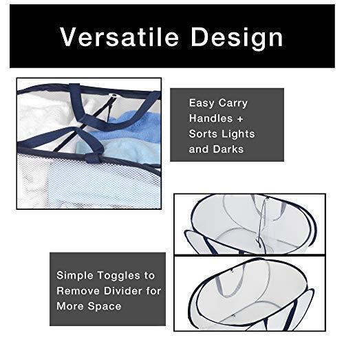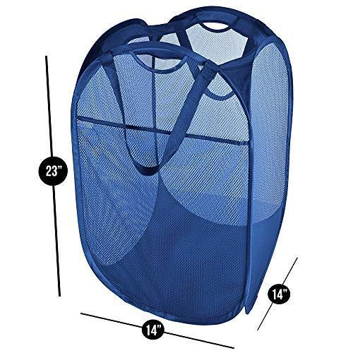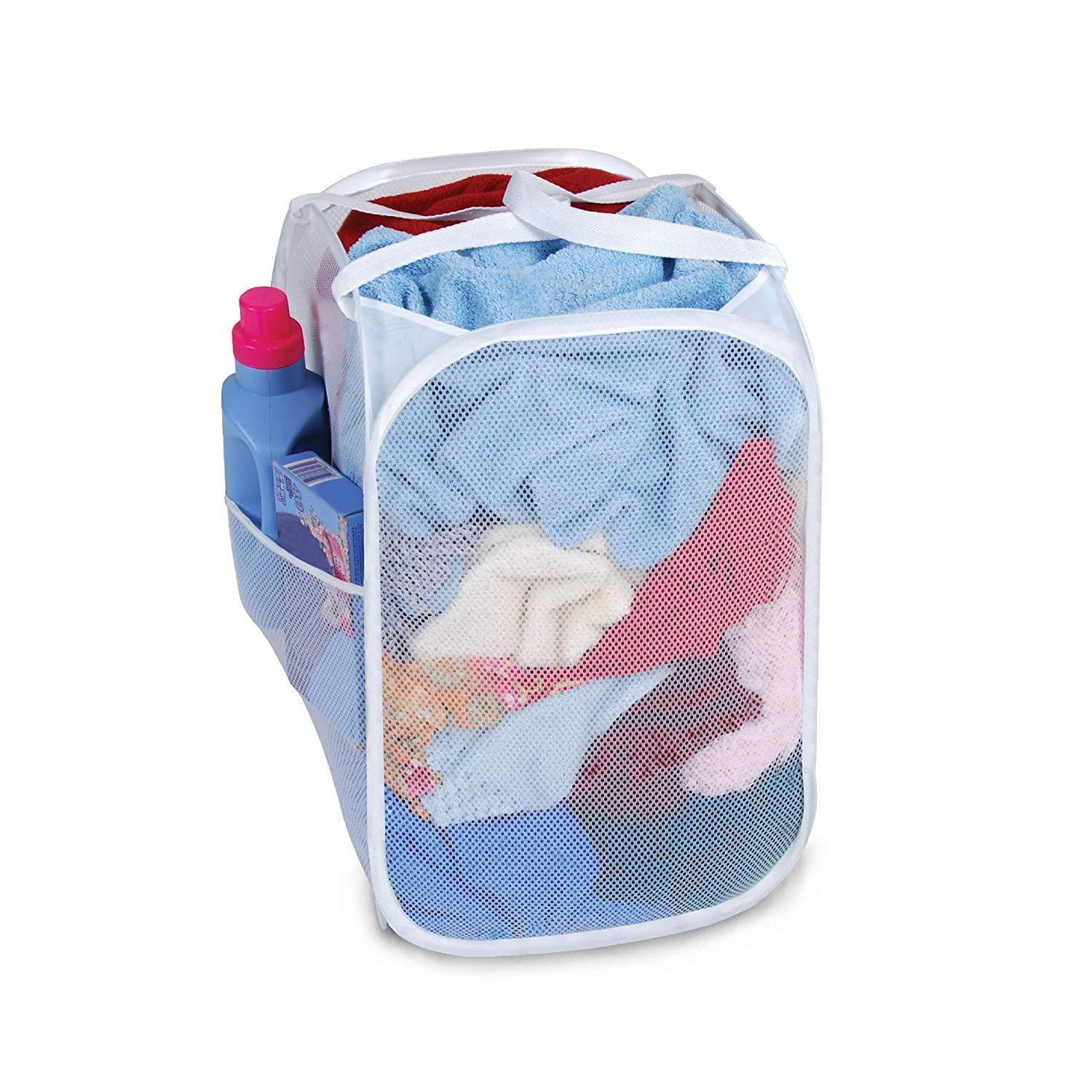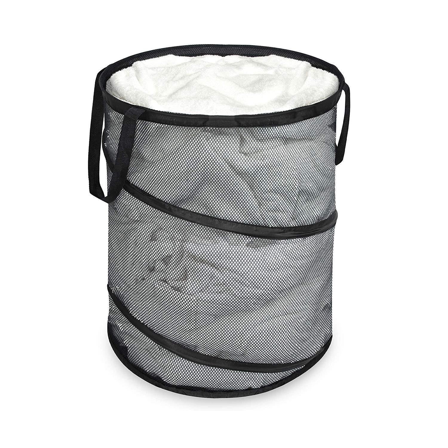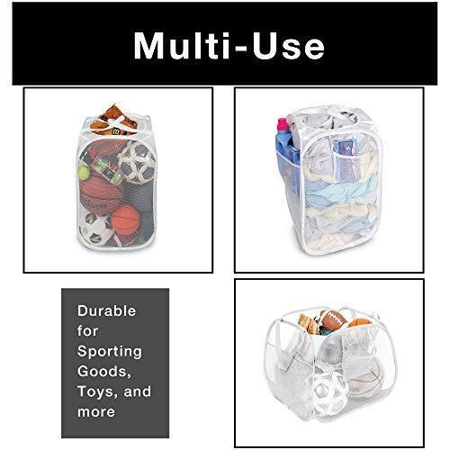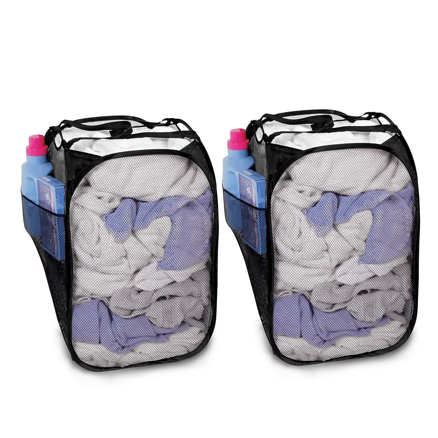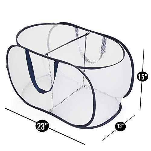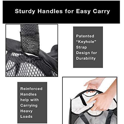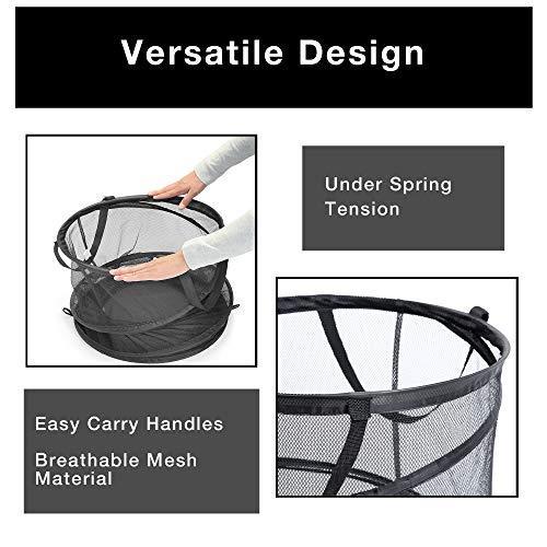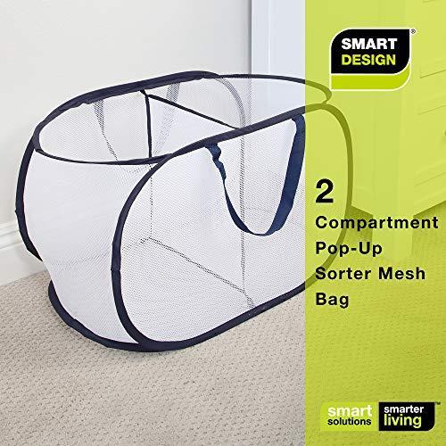 Smart Design Deluxe Mesh Pop Up Square Laundry Hamper w/ Side Pocket & Handles - VentilAir Fabric Collapsible Design - for Clothes & Laundry - Home - (Holds 2 Loads) (14 x 23 Inch) [Black]