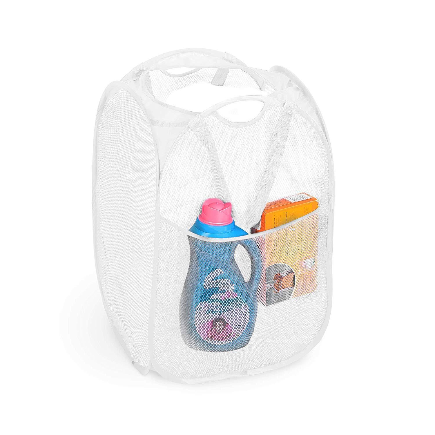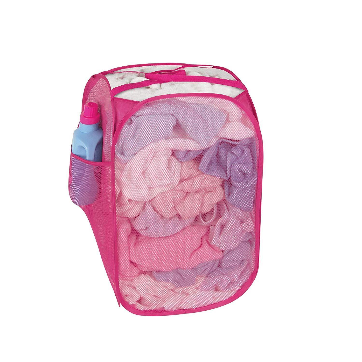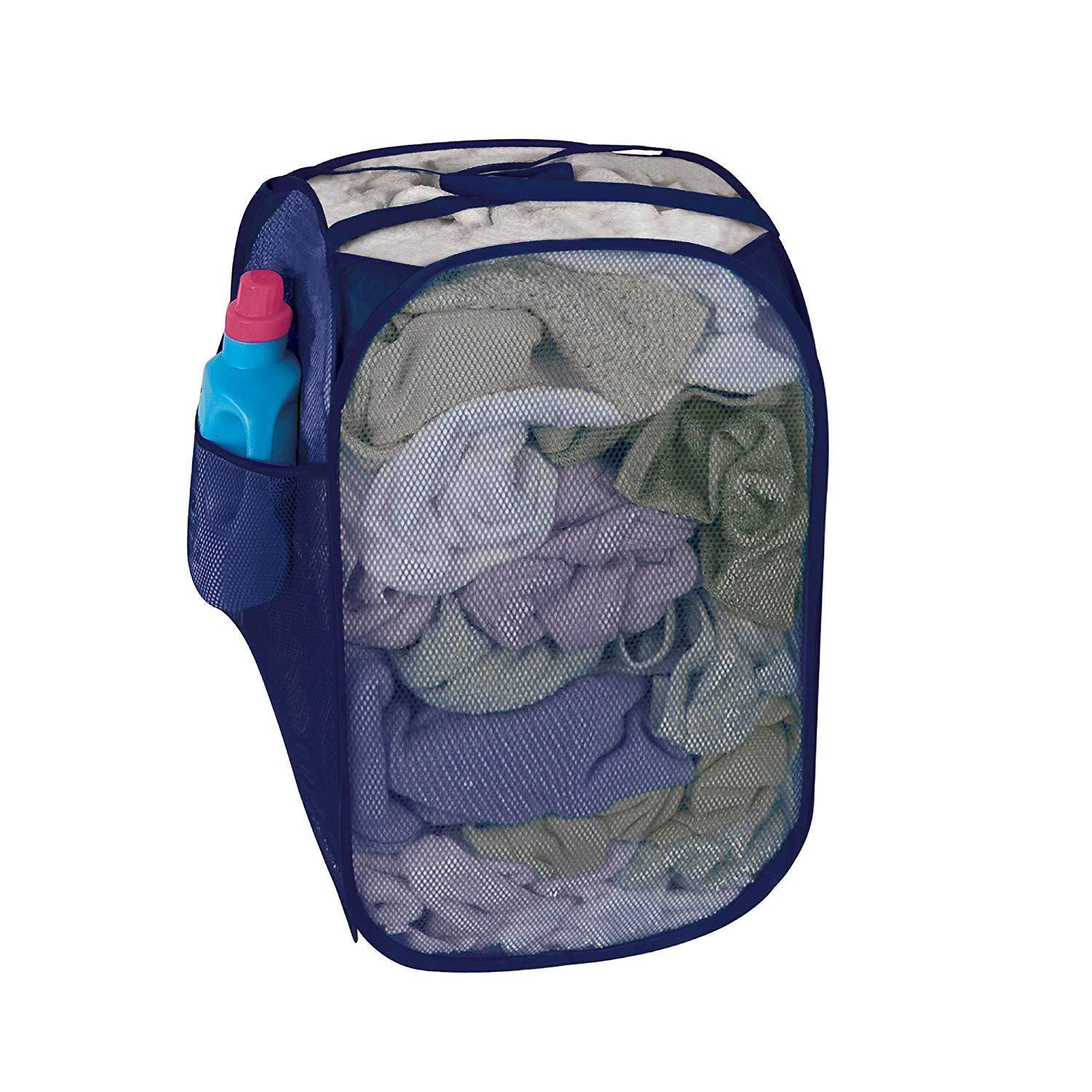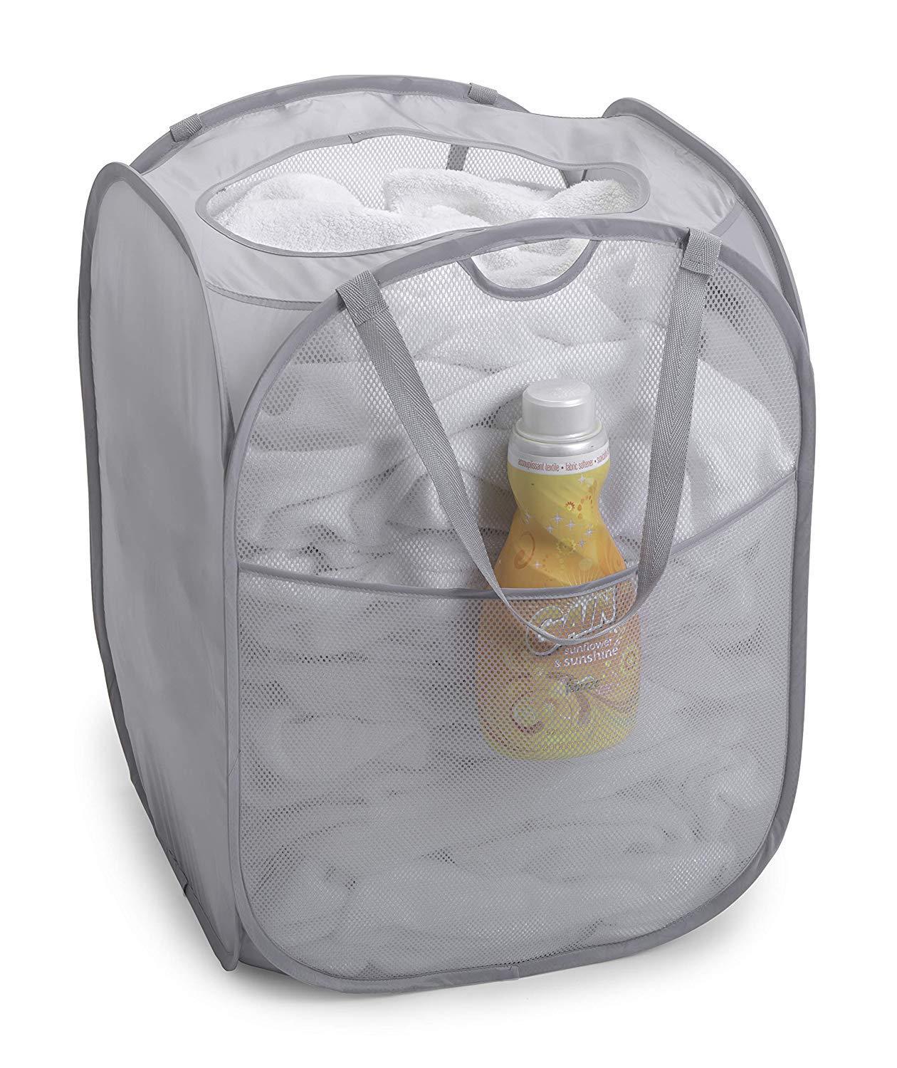 Smart Design Deluxe Mesh Pop Up Square Laundry Hamper w/ Side Pocket & Handles - VentilAir Fabric Collapsible Design - for Clothes & Laundry - Home - (Holds 2 Loads) (14 x 23 Inch) [Black]