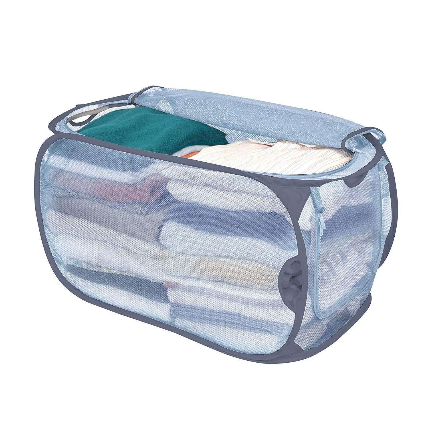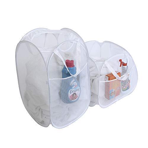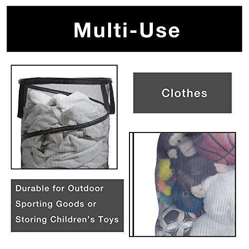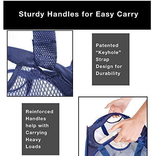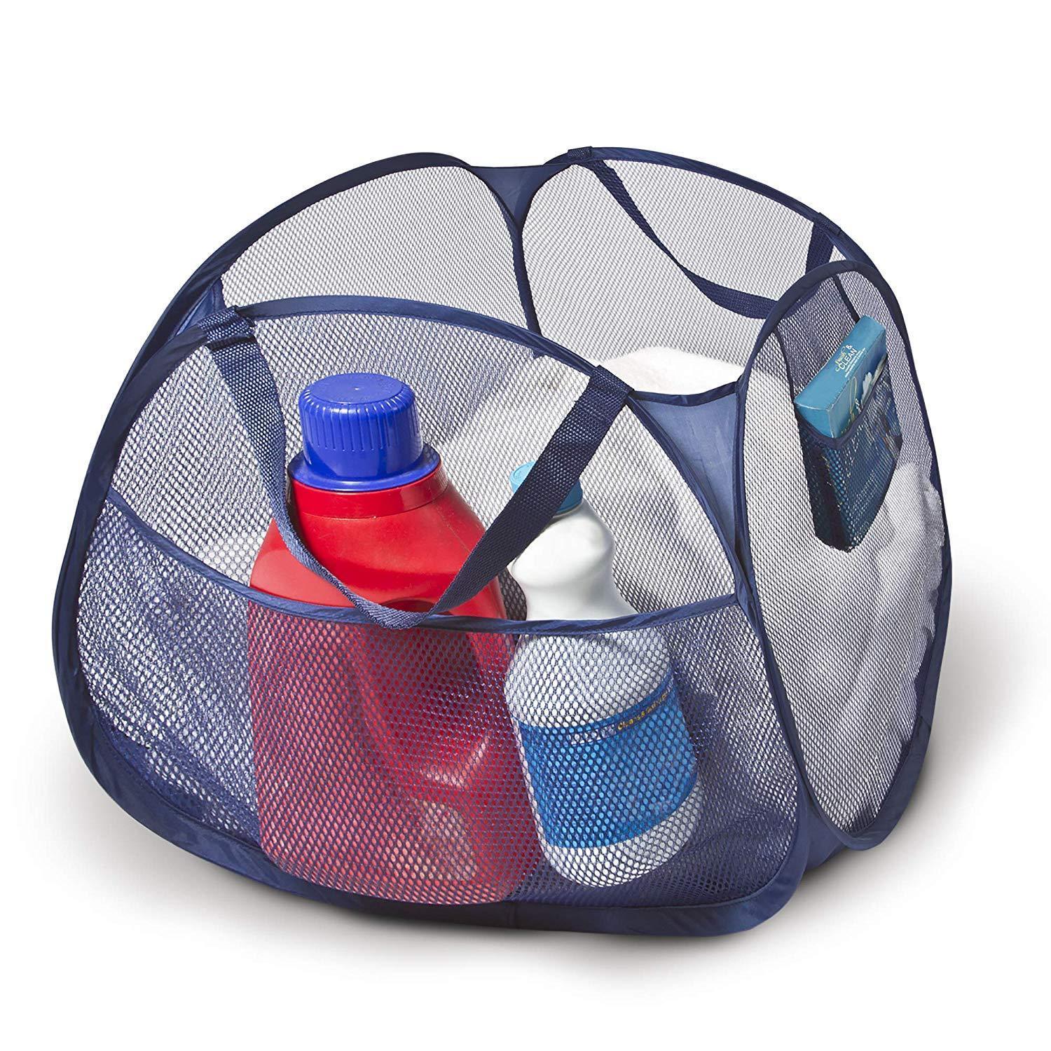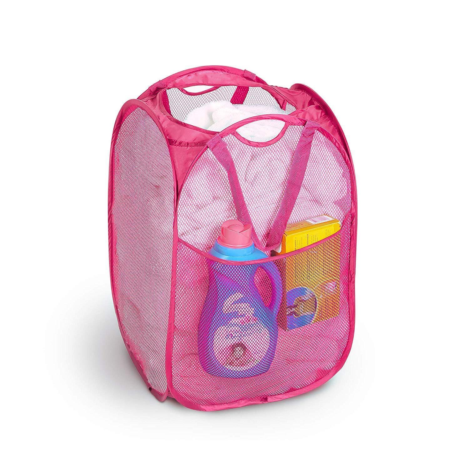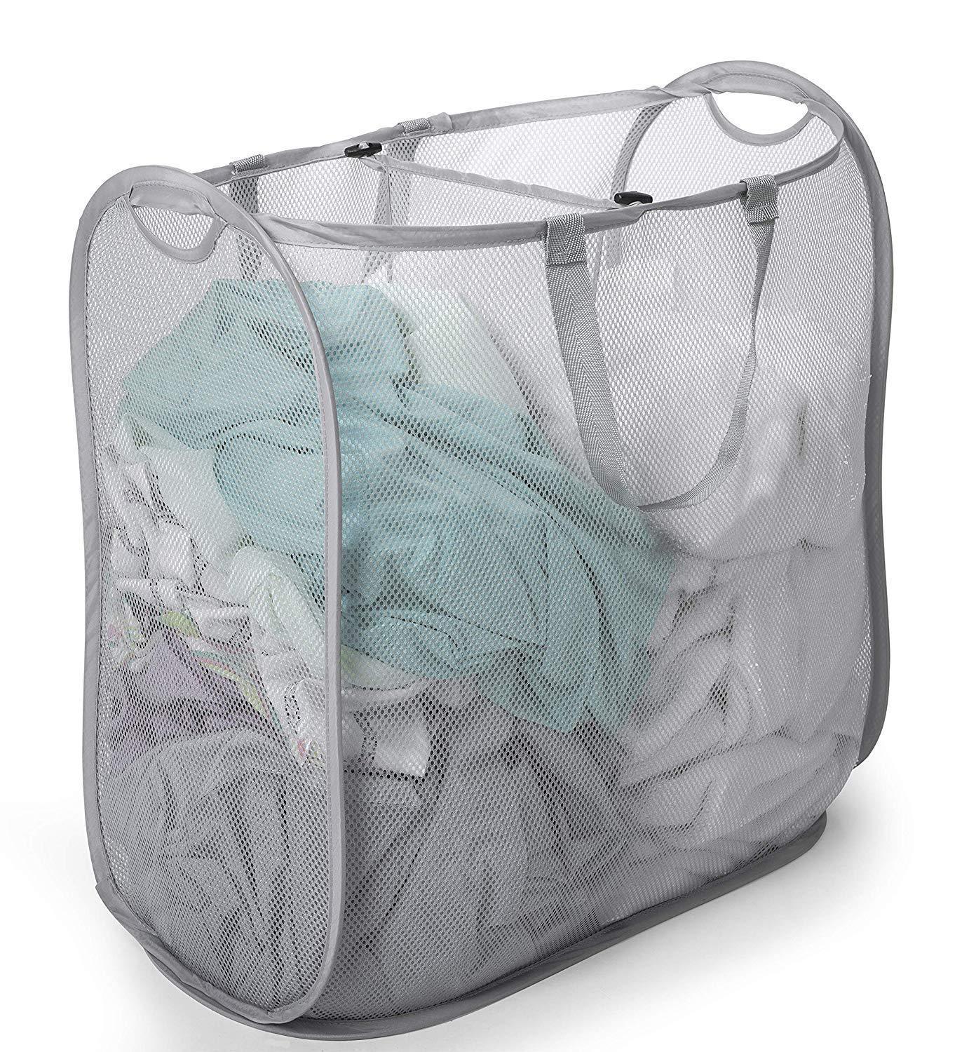 Smart Design Deluxe Mesh Pop Up Square Laundry Hamper w/ Side Pocket & Handles - VentilAir Fabric Collapsible Design - for Clothes & Laundry - Home - (Holds 2 Loads) (14 x 23 Inch) [Black]