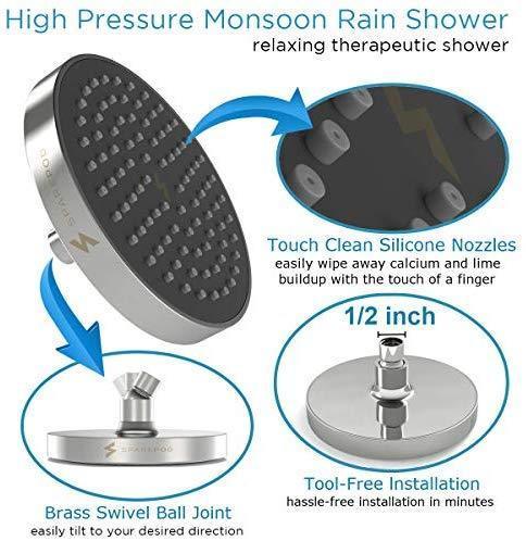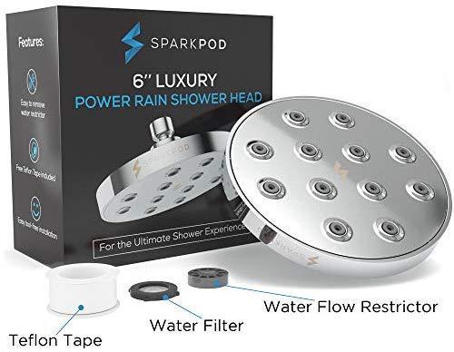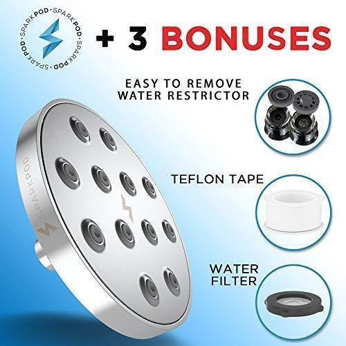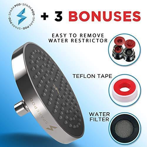 SparkPod Shower Head - High Pressure Rain - Luxury Modern Chrome Look - Easy Tool Free Installation - The Perfect Adjustable Replacement For Your Bathroom Shower Heads