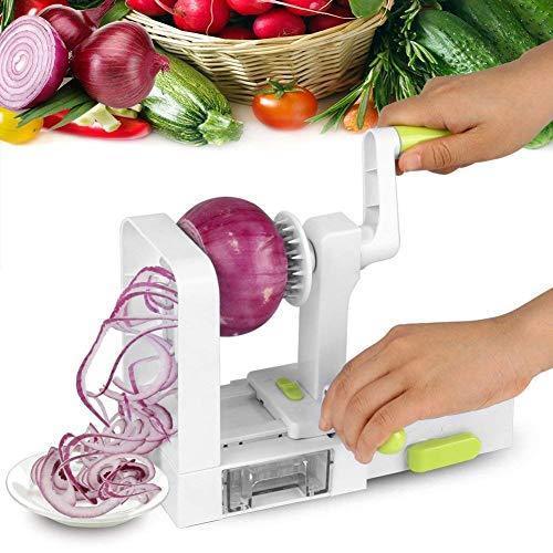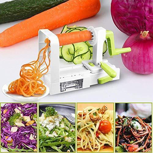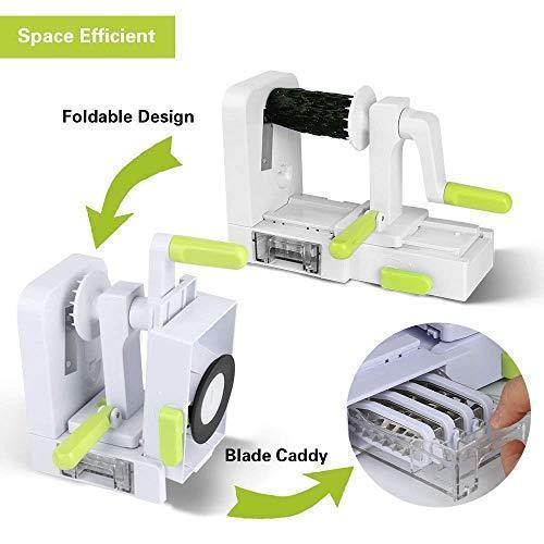 Spiralizer Vegetable Slicer, 5-Blade Spiral Slicer, Foldable Veggie Pasta Zucchini Spaghetti Zoodle Maker with Strong Suction Pad, Extra Blade Caddy, Cleaning Brush and Recipe Ebook by CHUGOD