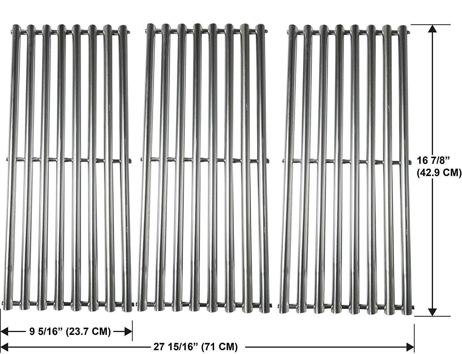 Stainless Steel Cooking Grids, set of 3.Dimensions: 16 7/8 x 9 5/16" For each unit, 16 7/8 X 27 15/16" For 3 units. Material: stainless steel. Fits Charbroil 463433016, 463461614, 463461615, 463420507, 463420508, 463420509, 463420510, 463420511, 463440109, 463460708, 463460710, 466420909, 466420911;