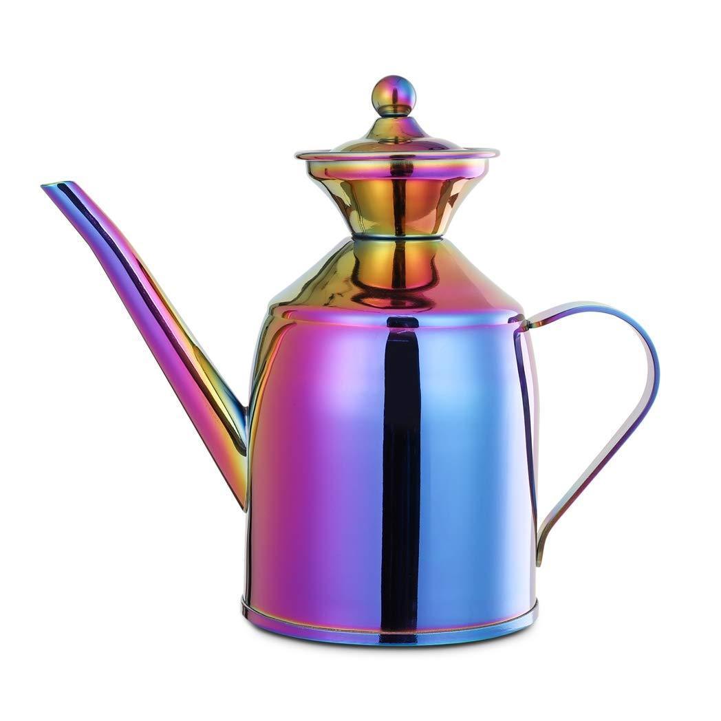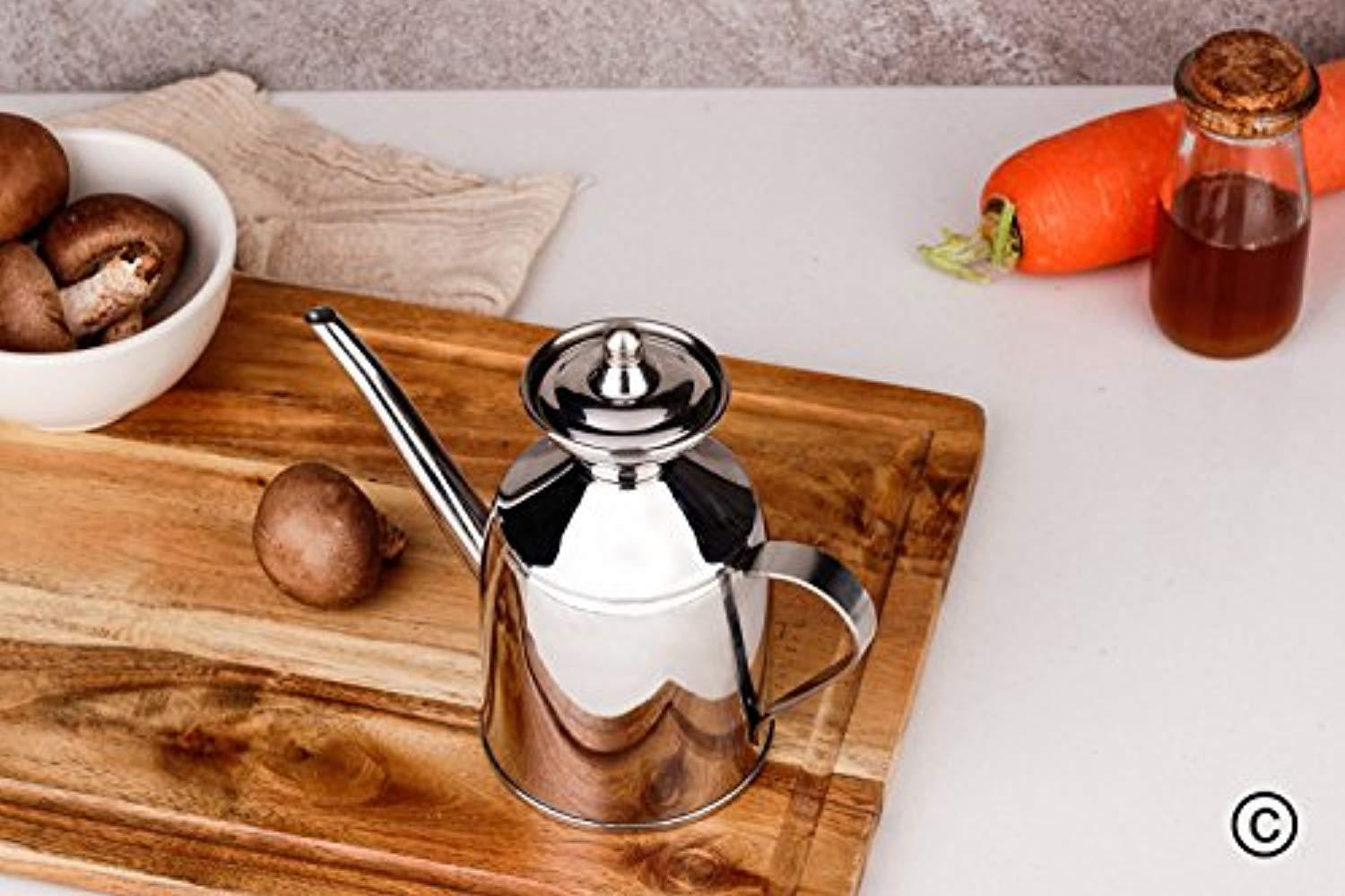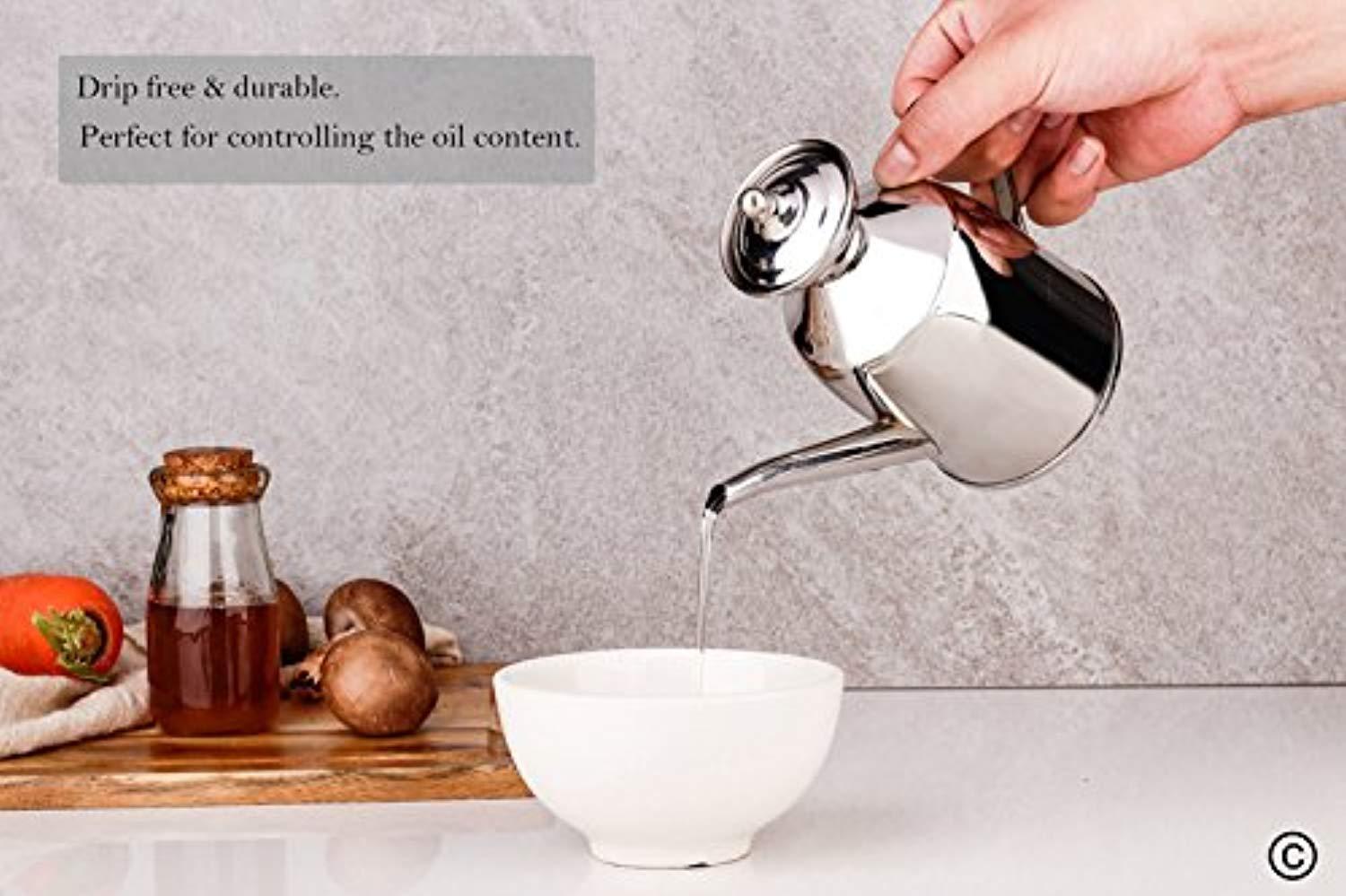 Stainless Steel Olive Oil Can Dispenser Pot Drizzler Canister Deluxe Silver Color 0.5 Quart (500 ml) Kitchen Tools Food Jar Cruets Utensil Storage