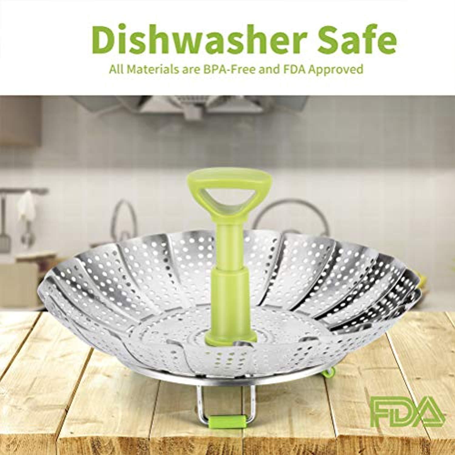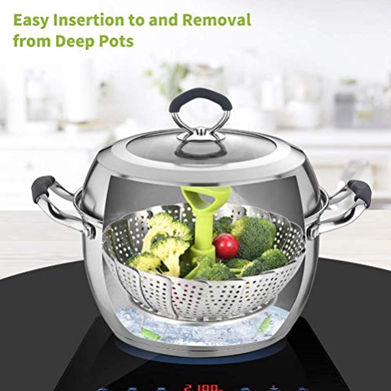 Stainless Steel Vegetable/Veggie Steamer Basket For Instant Cooking Pot With Handle And Legs, Foldable Food Container For Fish, Oyster, Crab, Seafood, Dumpling (5.1 Inch To 9 Inch, Dishwasher Safe)