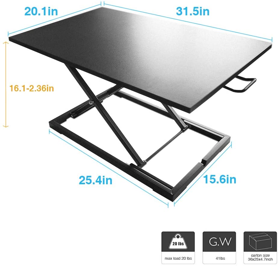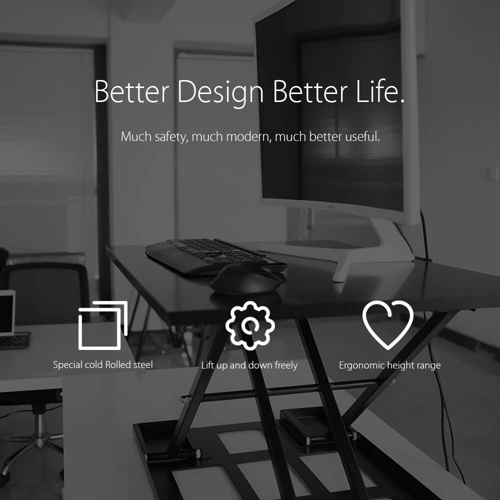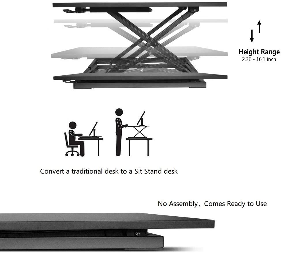 Standing Desk,Big Height Adjustable Standing Desk Converter, 20.1×31.5 Inch Work Area, Fully Assembled (Black) by Defy Desk