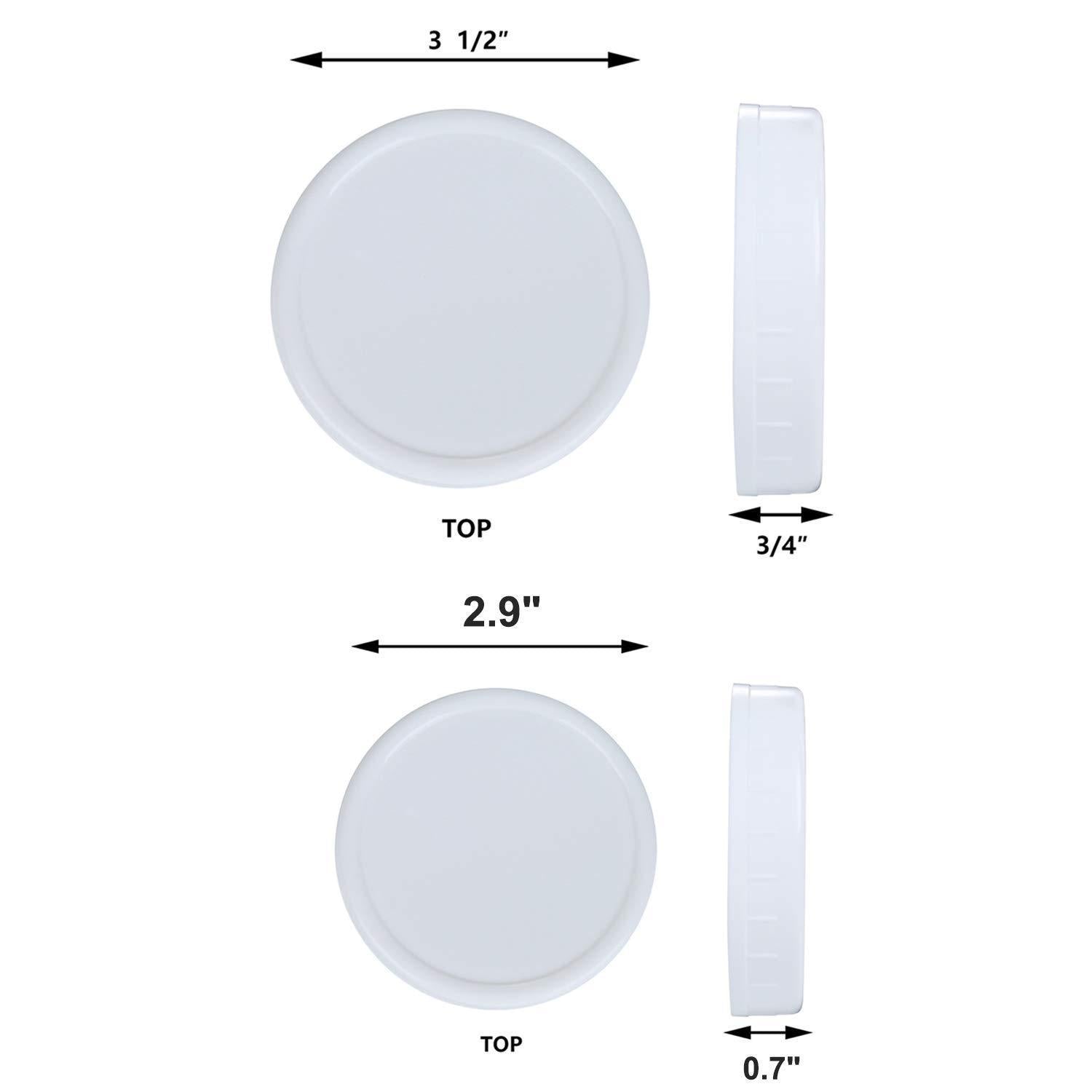 VALUE SET OF TWO SIZES JAR LIDS: 8-Pack reusable plastic regular mouth and 8-Pack wide mouth screw-on mason jar lids, enough to meet your needs for multi-purpose. Fits regular-mouth and wide-mouth mason jars and other jars with 70mm/86mm openings size. Fits any size of regular-mouth/wide-mouth mason jars. Not include Jars.