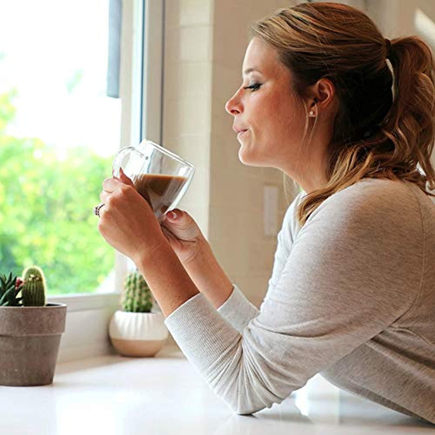 Stone & Mill 2 Glass Coffee Cups 12 oz, Insulated Double Wall Coffee Mugs AM-12