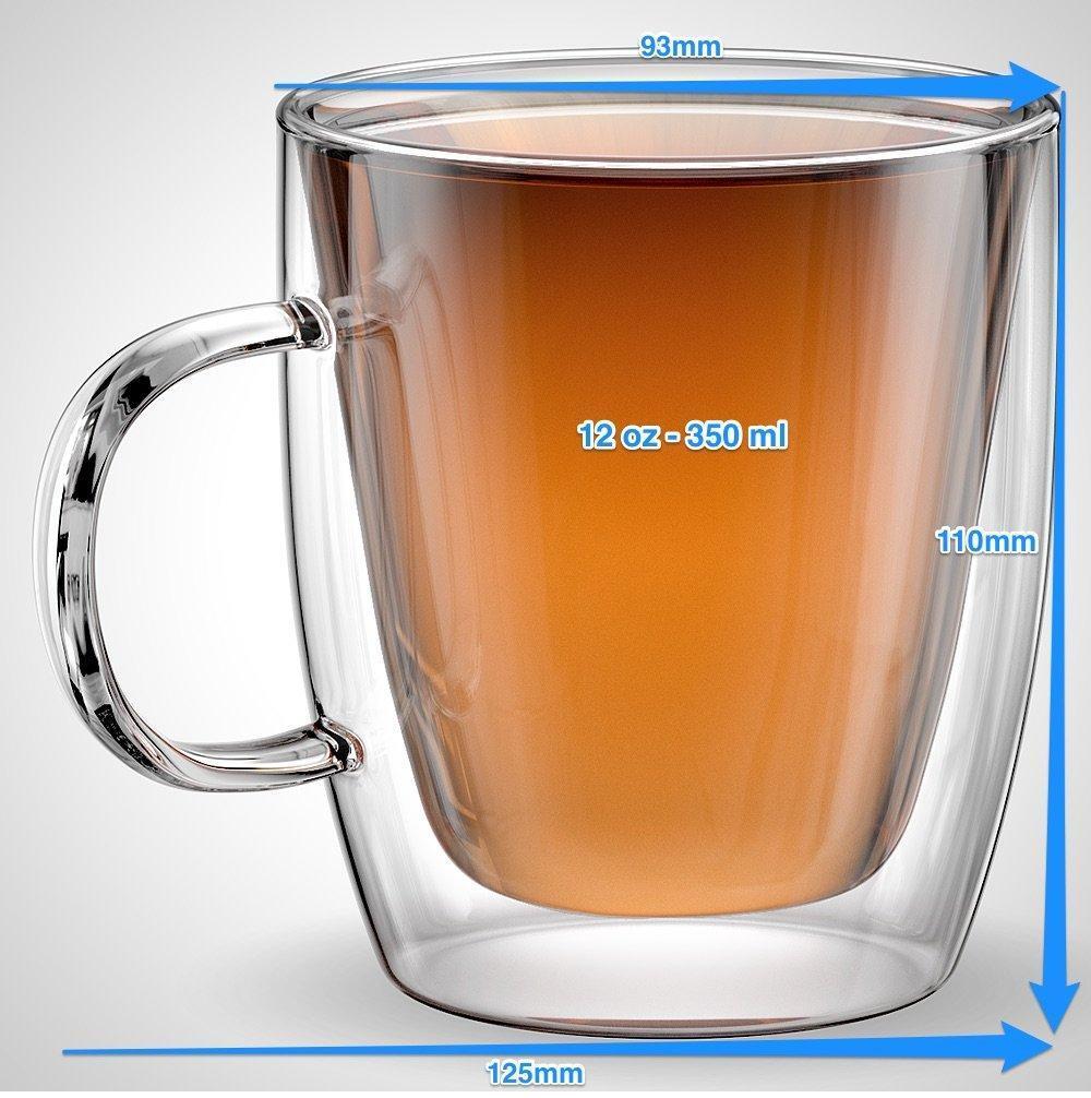 Stone & Mill 2 Glass Coffee Cups 12 oz, Insulated Double Wall Coffee Mugs AM-12 by Stone & Mill Homewares
