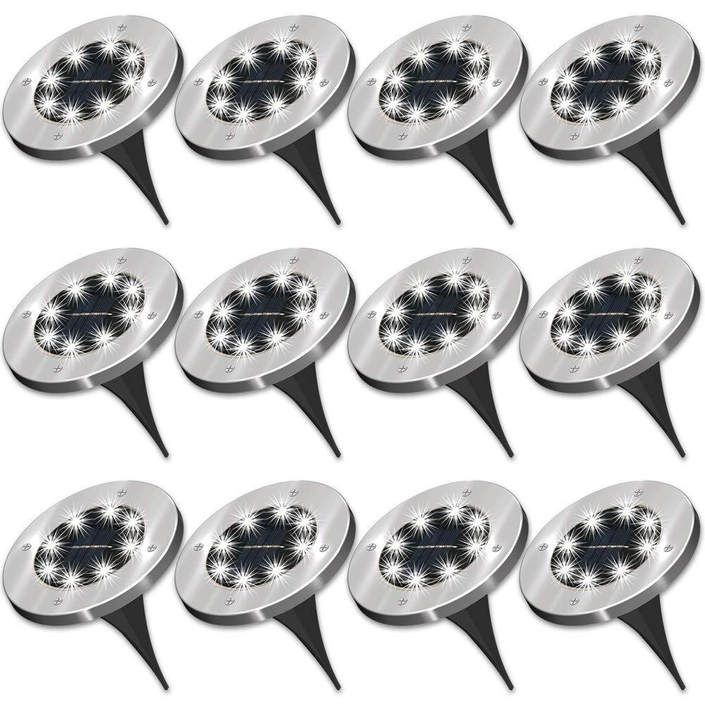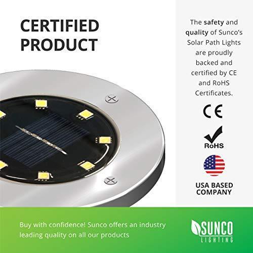 Sunco Lighting 12 Pack Solar Path Lights, Dusk-to-Dawn, 7000K Diamond White, Cross Spike Stake for Easy in Ground Install, Solar Powered LED Landscape Lighting - RoHS/CE
