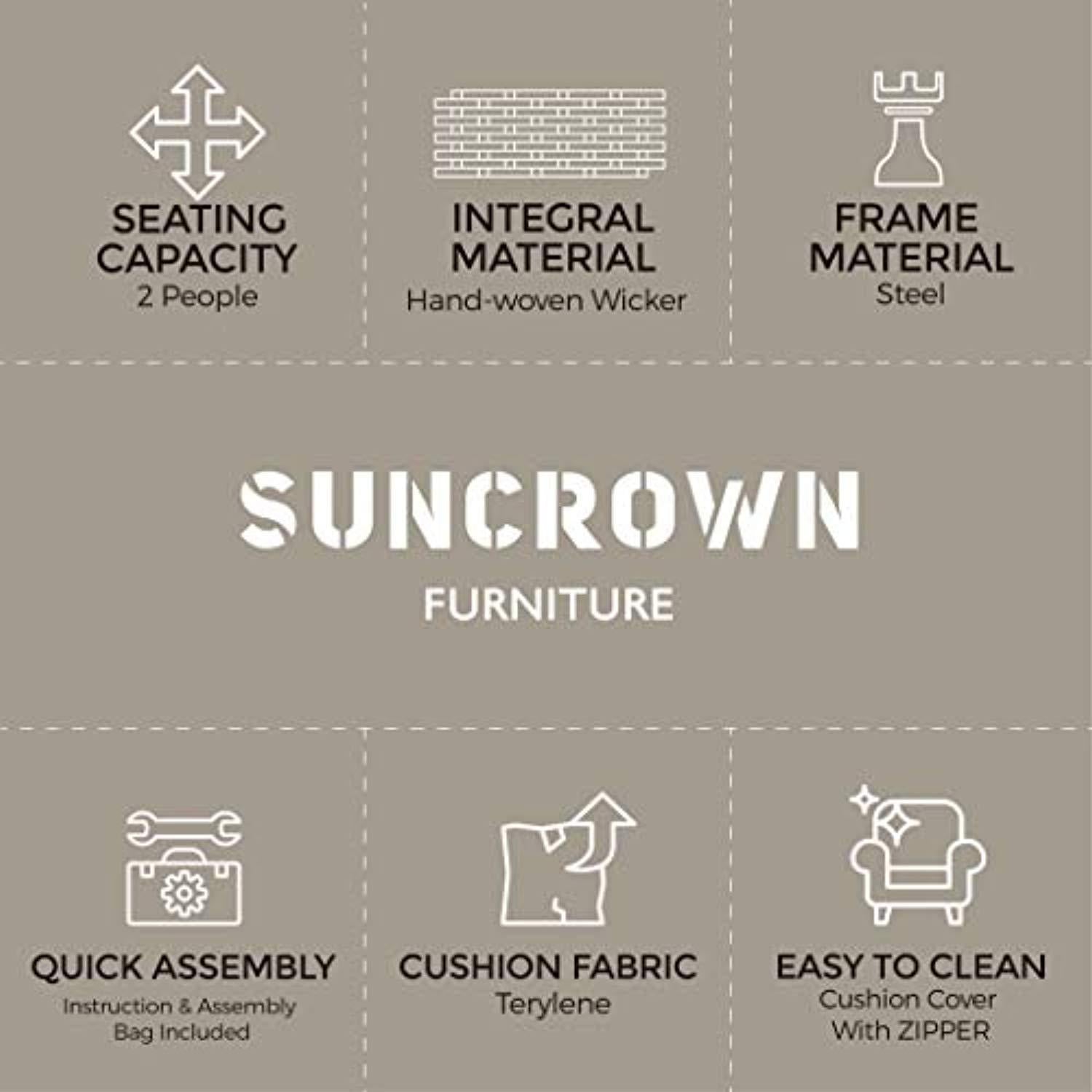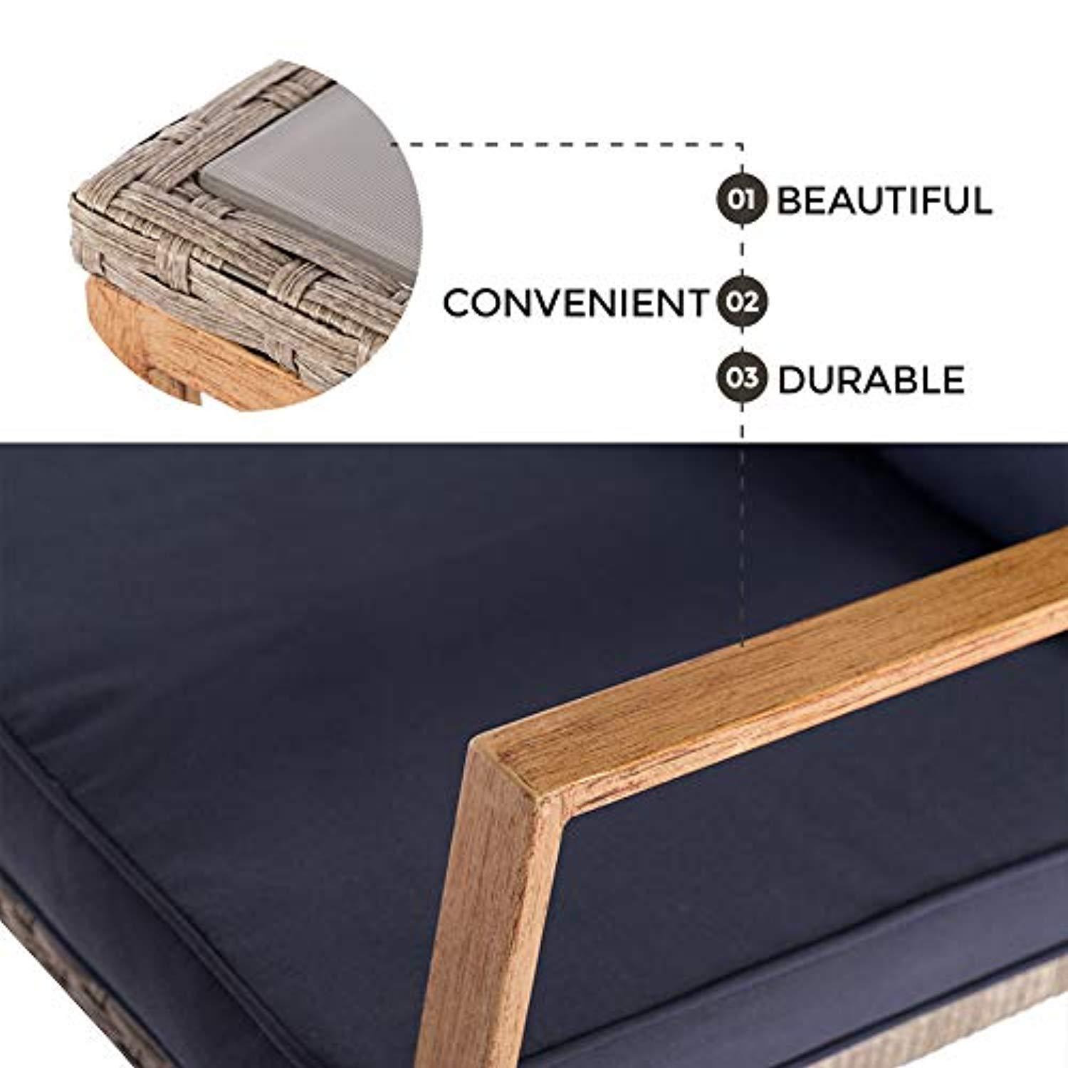 SUNCROWN Outdoor Rocking Chair Set 3-Piece Patio Bistro Set: Grey Wicker Patio Furniture W/Wood-Grain Arm Rest - Two Chairs with Glass Coffee Table (Nautical Navy Cushion)