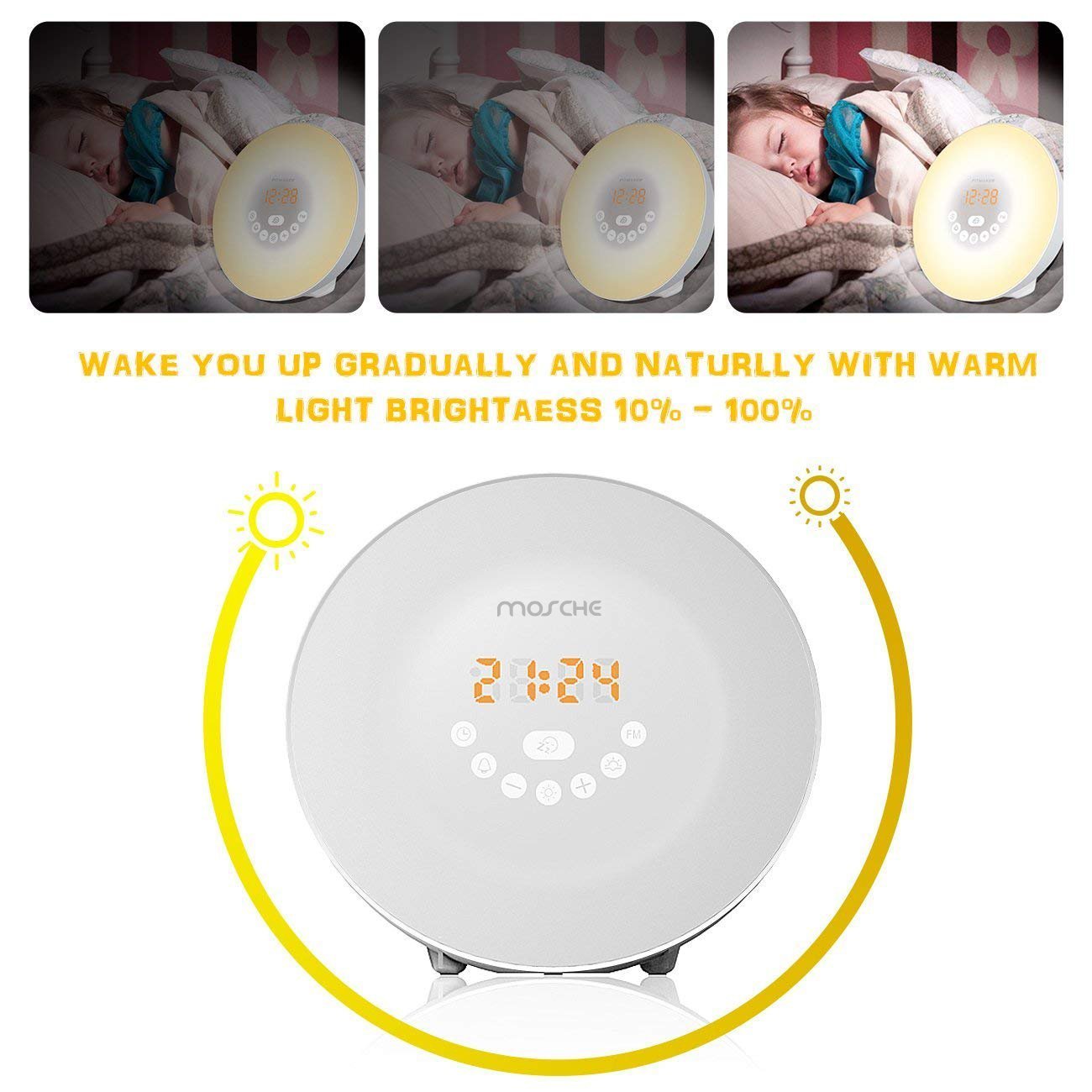 Sunrise Alarm Clock, Wake Up Light with 6 Nature Sounds, FM Radio, Color Light, Bedside Sunrise Simulator (White)