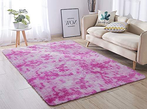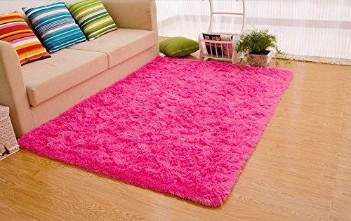 Super Soft Indoor Modern Shag Area Silky Smooth Rugs Living Room Carpet Bedroom Rug for Children PAGISOFE Play Solid Home Decorator Floor Rug and Carpet 4- Feet by 5- Feet (Hot Pink)