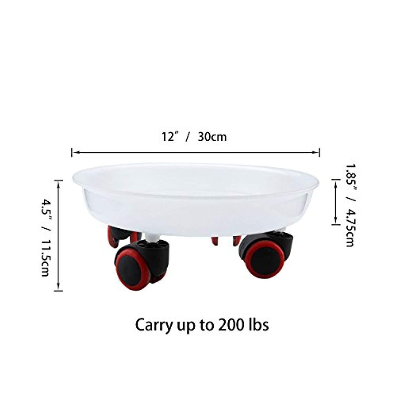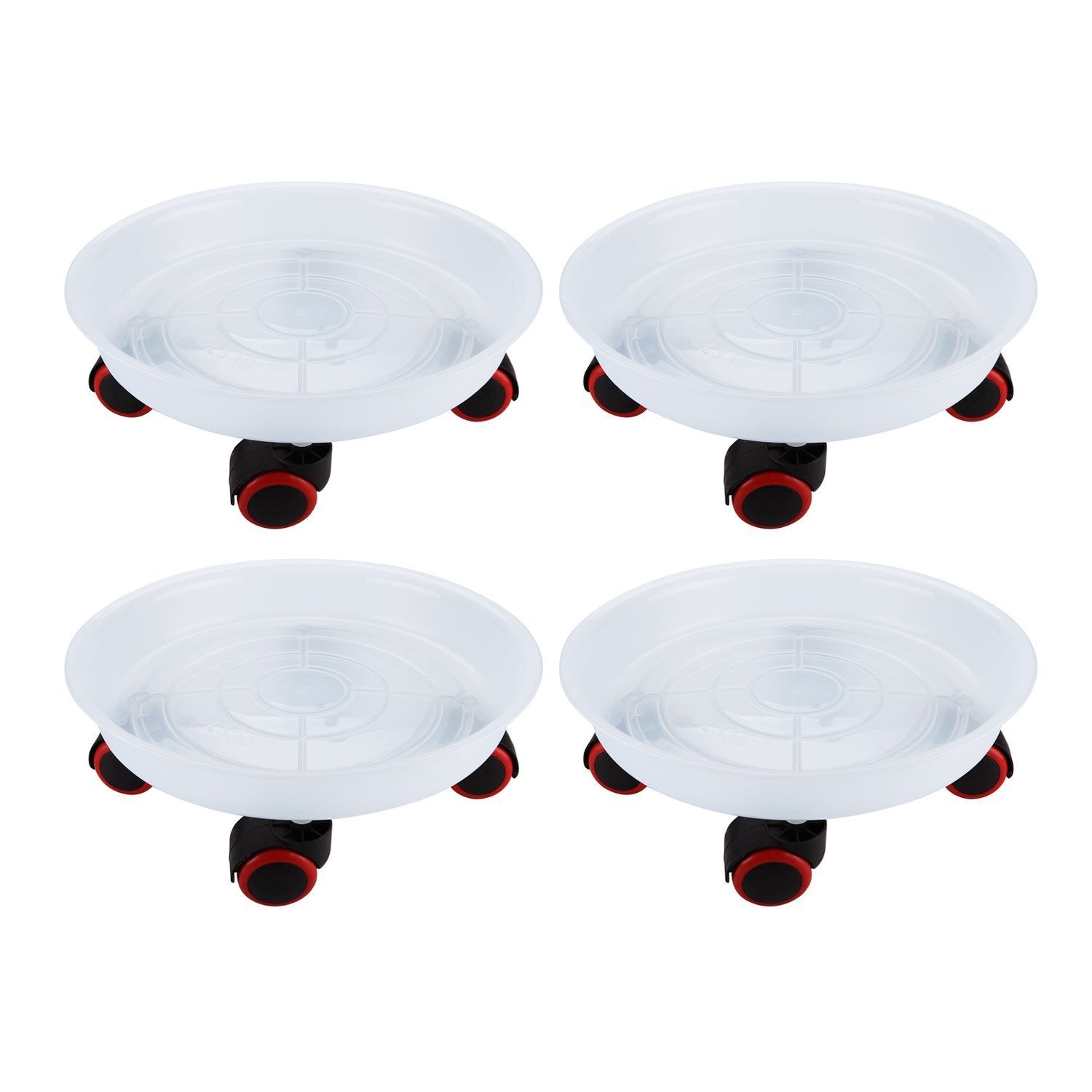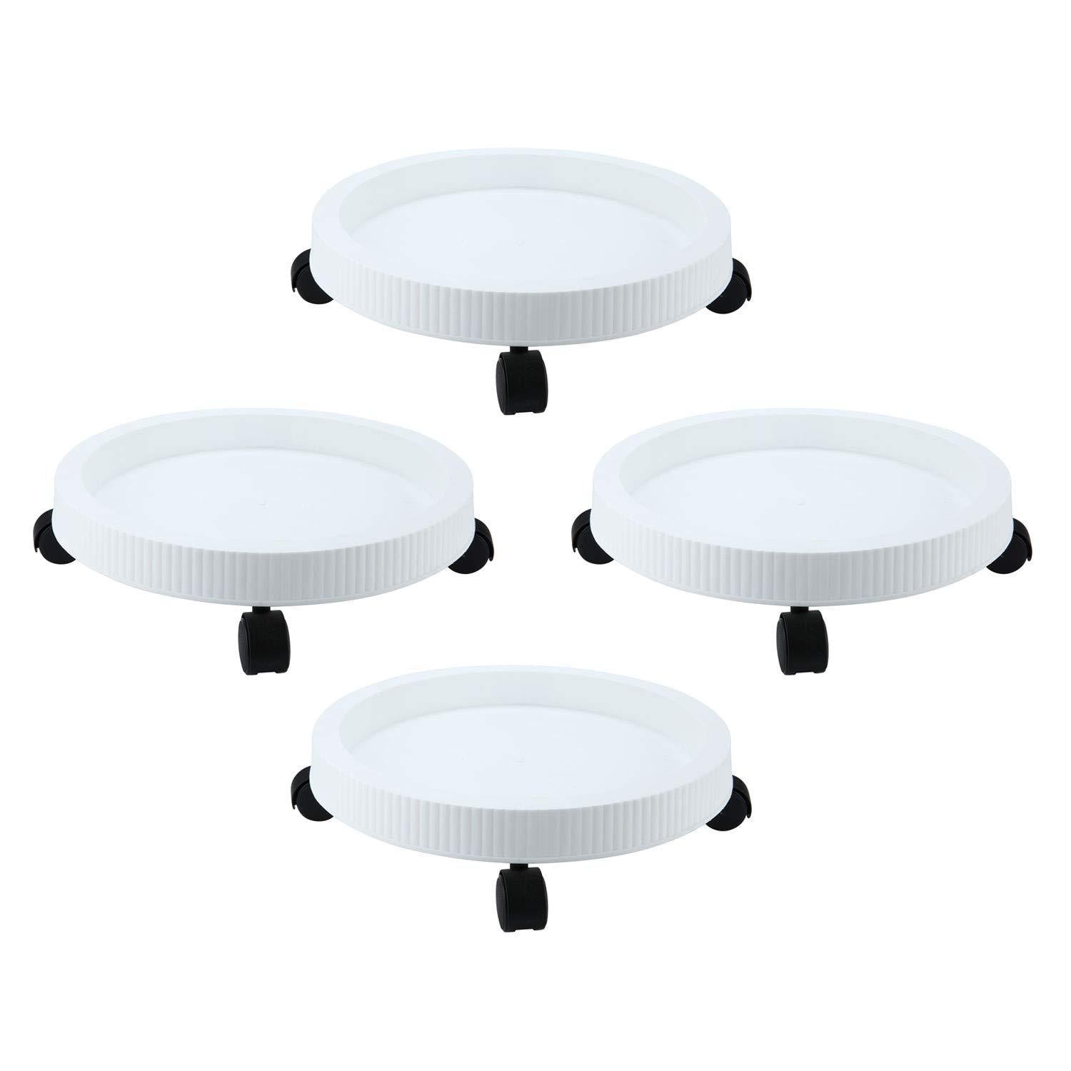 T4U 12" Round Plastic Plant Caddies Flower Planter Pot Stand Pack of 4, Movable Stand with Wheels Rack on Rollers Dolly Holder on Wheels Planter Trolley Casters Rolling Tray Coaster