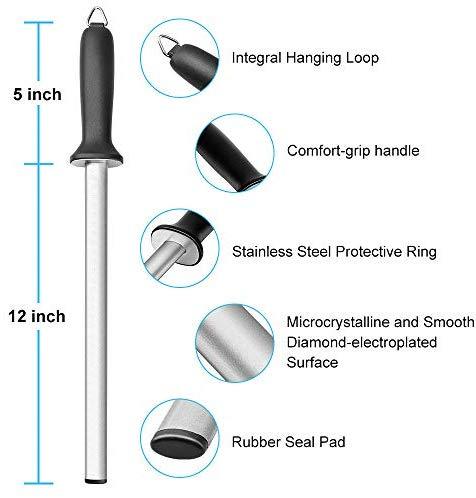 TAIDEA 12 Inch Diamond Knife Sharpener Steel Rod Knife Sharpening Professional, Honing Rod for Sharpening Your Chef's Knife, Carving Knife, Chopping Knives
