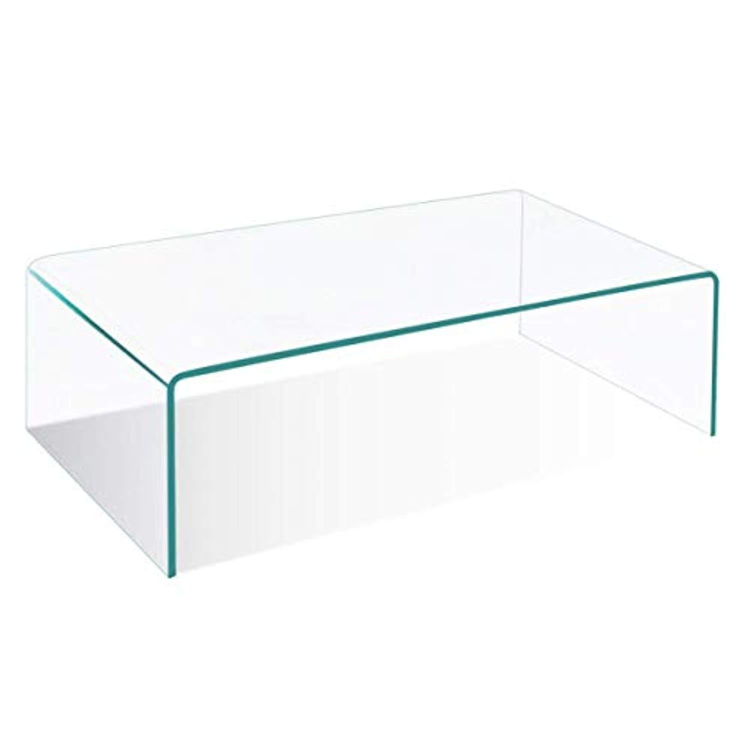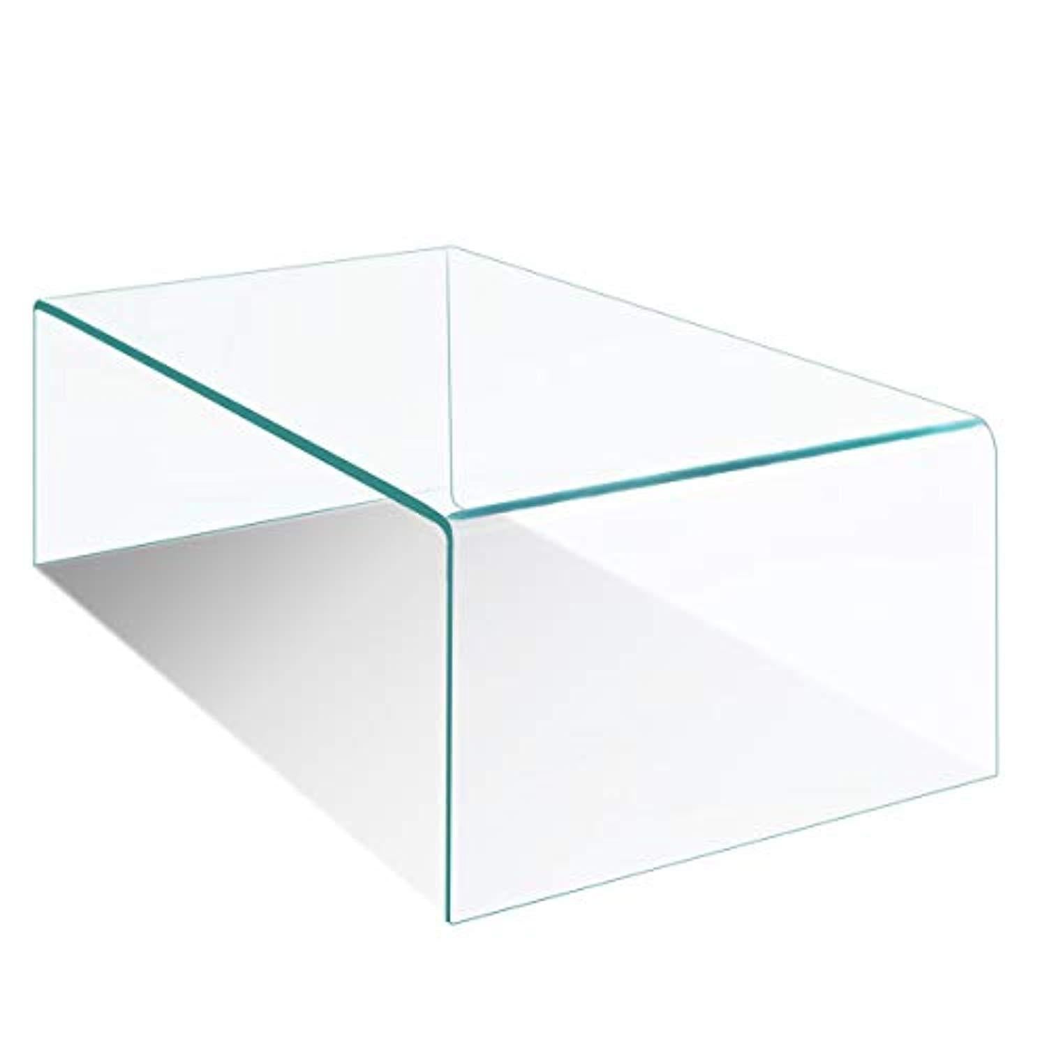 Tangkula Glass Coffee Table Modern Home Office Furniture Clear Tempered Glass End Table International Occasion Tea Table Waterfall Table with Rounded Edges