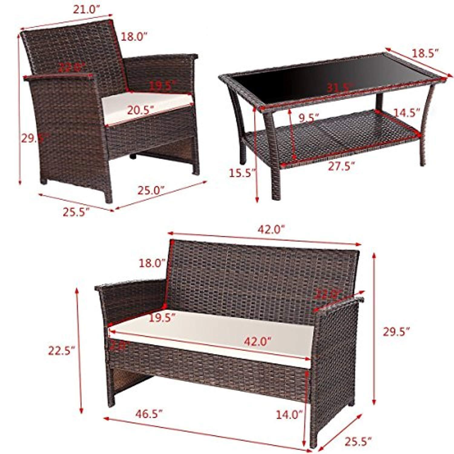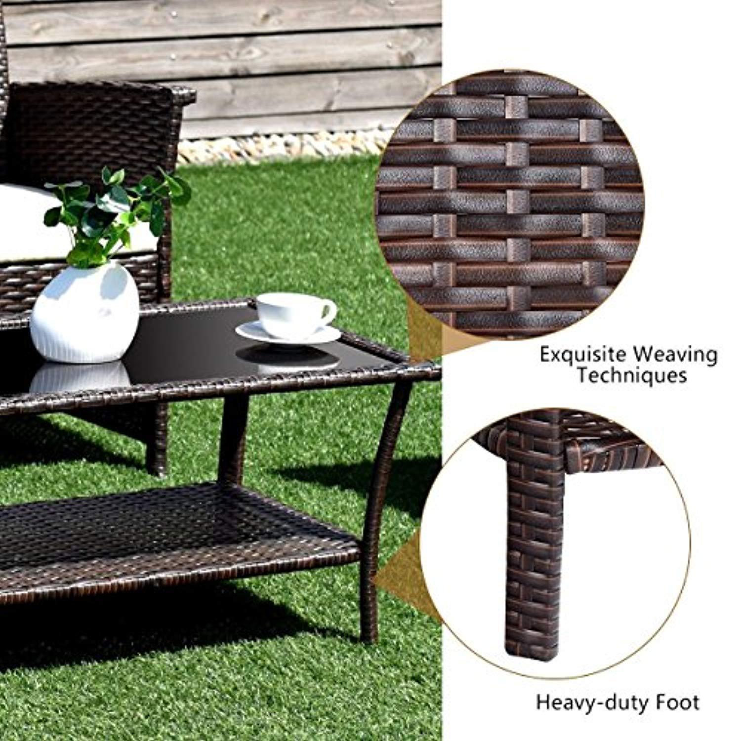 Easy to Clean & Maintenance: Weather-resistant PE rattan and seat cushions with removable zippered cover for easy cleaning and maintenance; Safe tempered glass on the table adds more convenience to clean after use.