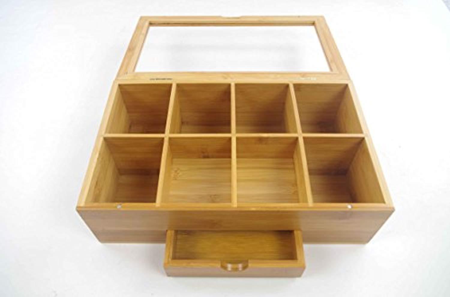Tea Organizer Bamboo Tea Box with Small Drawer 100% Natural Bamboo Tea Chest - Great Gift Idea