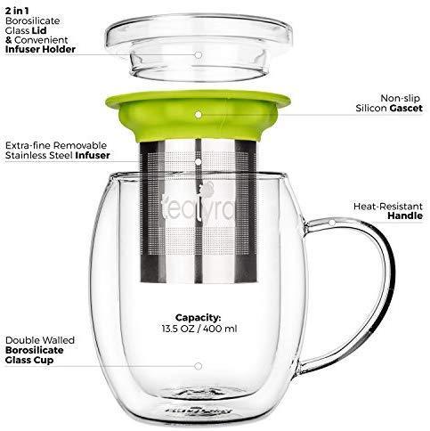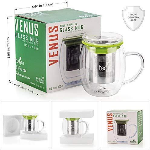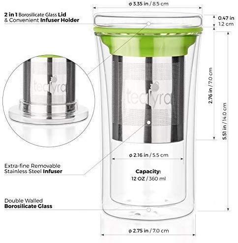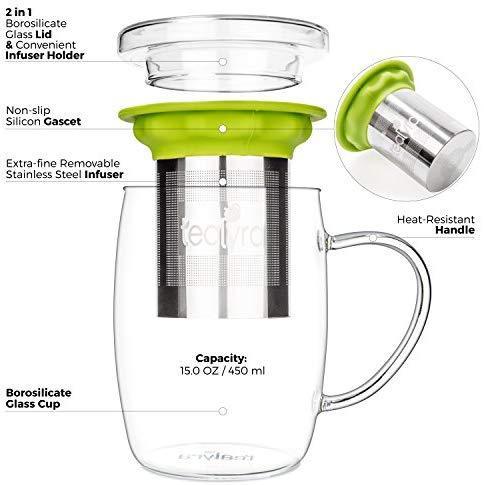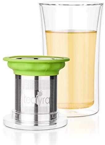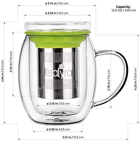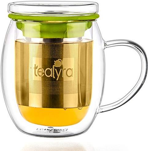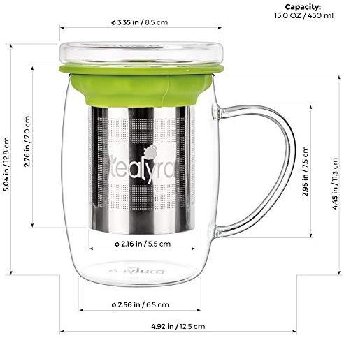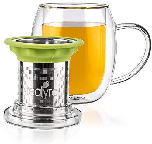Our perfecTEA Infuser Cup is functional and well-designed! perfecTEA - Infuser Glass Cup is large, lightweight and sturdy, and effortless to clean. The stainless steel infuser is accented with a bright silicone band; this silicone band prevents chipping the rim, and keeps the edges cool for easy removal after brewing! Great for any loose teas, tisanes, or blooming teas; perfecTEA - Infuser Cup is bound to be your new favorite mug! GREAT GIFT. Are you looking for an original and useful gift for a friend, colleague or relative? How about giving a friend or a loved one an opportunity to enjoy tasty and flavorous freshly brewed tea (at home or in the office) every day? Best tea mug from Tealyra is always a good idea for any holiday and for any occasion.
