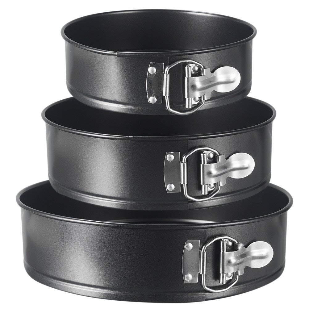 Tebery 3 Pack 7"" 9"" 10"" Non-stick Springform Cake Pan Set Leakproof Round Cake Pan with Quick Release Clips and Removable Waffle Texture Bottoms - Black