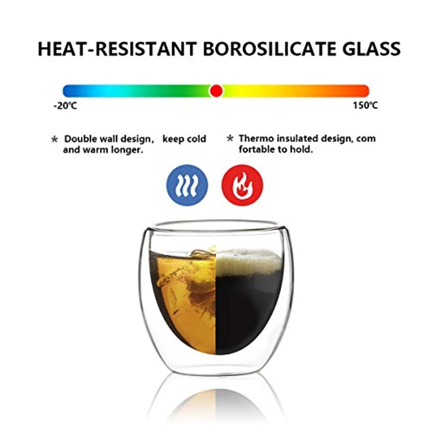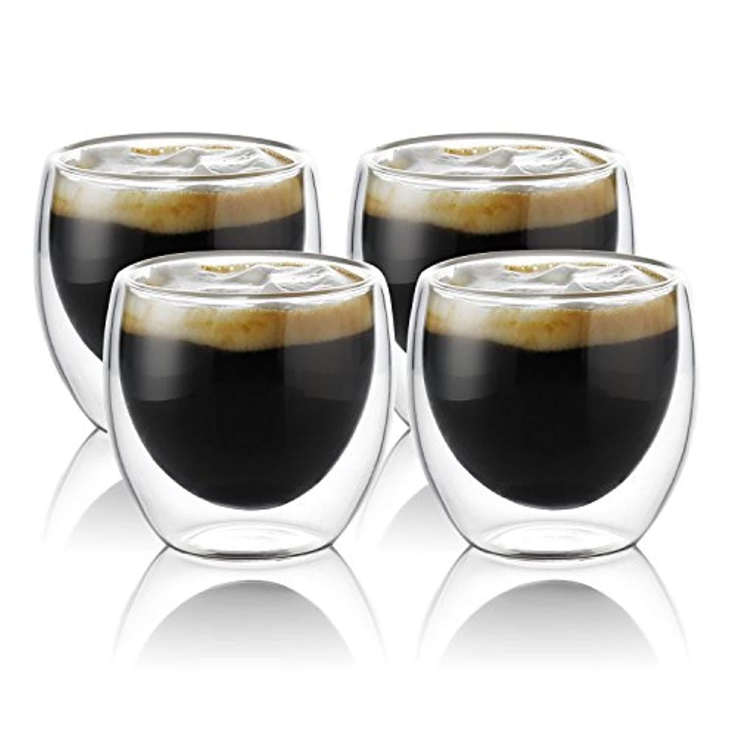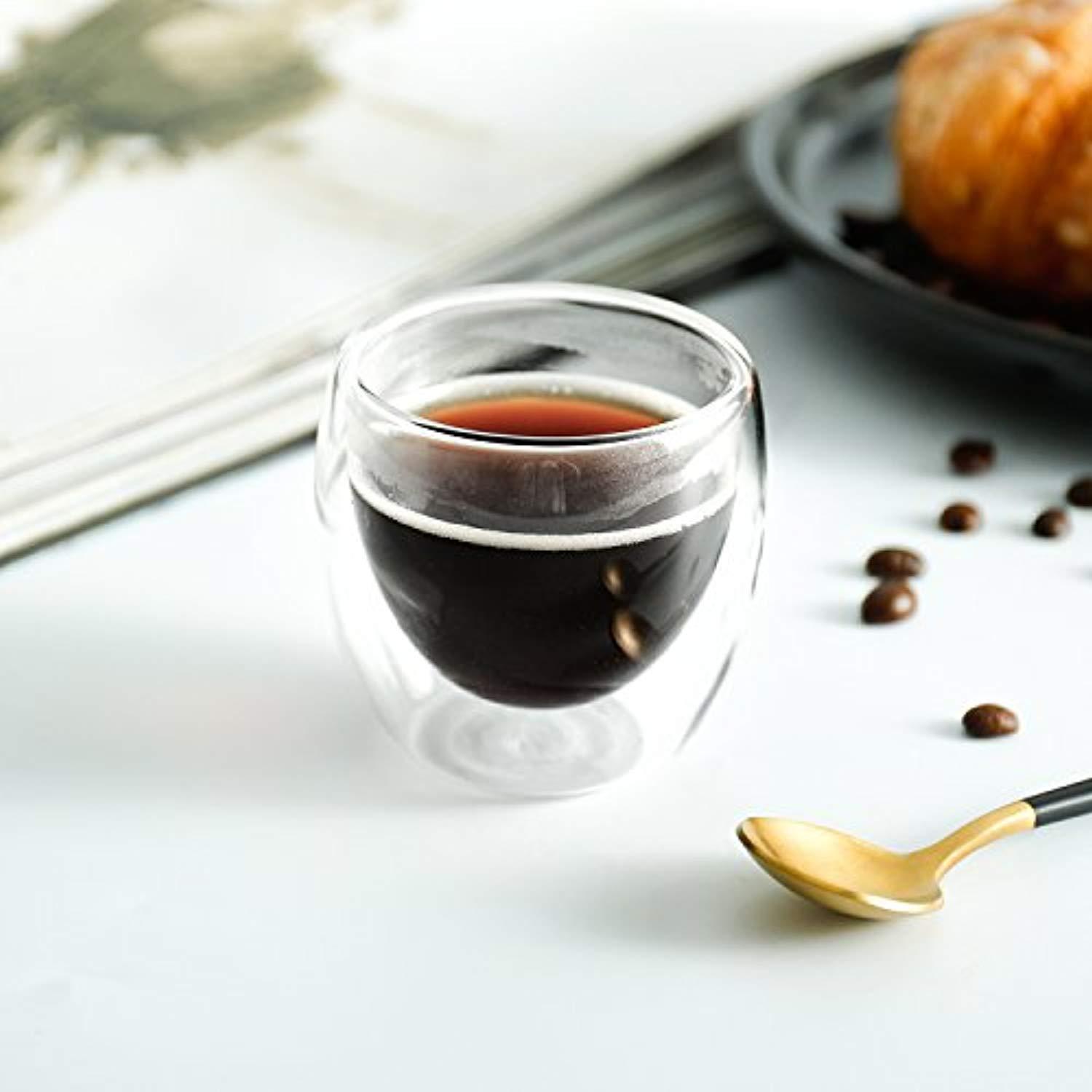 Teocera Espresso Cups Shot Glass Coffee Set of 4-2.7 oz Borosilicate Glass Coffee Mug, Clear and Durable Double Walled Mug Sets with Insulation, Good for Espresso Coffee, Tea, Beverage