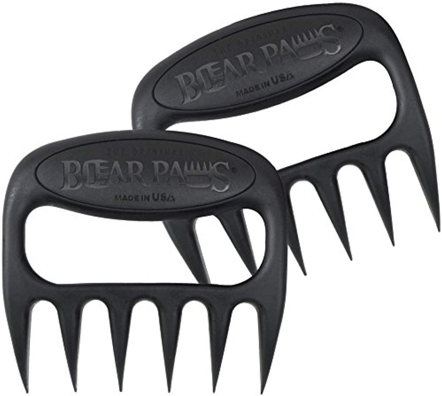 TIME SAVER - Bear Paws are the answer to perfectly shredded meat without the mess and headache of knives and forks. Easily grasp and shred pork, chicken, beef, and more with the ultra-sharp “claws.” MELTPROOF and DISHWASHER SAFE - Made of BPA-free nylon, FDA-approved, and heat-resistant up to 475 degrees. Never worry about your shredding tools melting near the grill or in the dishwasher. EASY & FUN TO USE - Lift, handle, shred, pull, and carve to your heart’s content. Excellent as turkey lifters, too! Our unique design gives you a perfect handhold for safely managing the super-sharp shredding blades. BBQ PRO FAVORITE - Featured on BBQ Pitmasters, Guy Fieri’s Diners, Drive-Ins, and Dives, and America’s Test Kitchen. Bear Paws have been named “Best BBQ Tool” by the National BBQ Association. THE ORIGINAL BEAR PAWS - The favorite BBQ accessory for years, Bear Paws are 100% made in the USA. Nobody beats us for quality and strength. We know Bear Paws will make your BBQs 100% more epic.