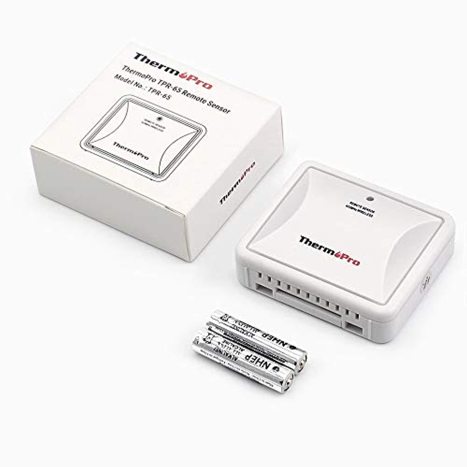 ThermoPro TPR65 Sensor ONLY for Indoor Outdoor Thermometer Humidity Monitor ThermoPro TP60S (ASIN:B06XKH666P ) and TP65 (ASIN: B075QBRR6S). NOT apply to TP63/TP67, please make sure of the MODEL NO. before your purchase. Sensor data is transmitted every 50 seconds using 433 MHz wireless signal up to 200 foot (60 meter) range Tabletop or wall-mountable design. Requires 2 AAA batteries (Batteries included)