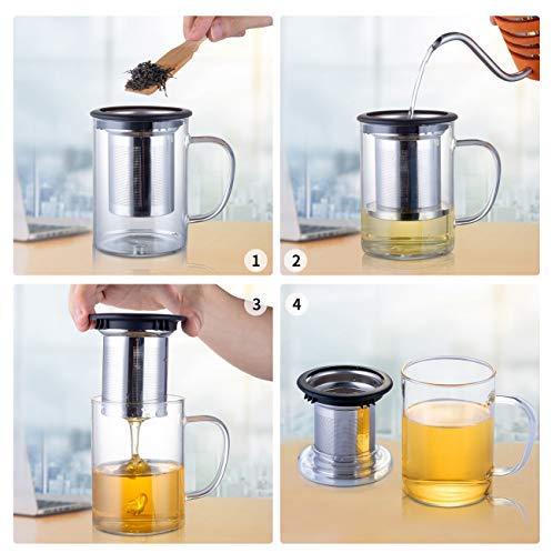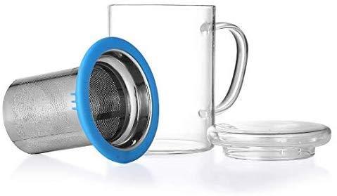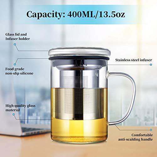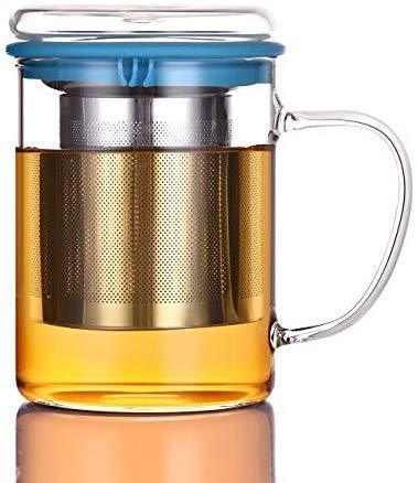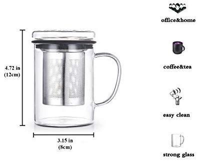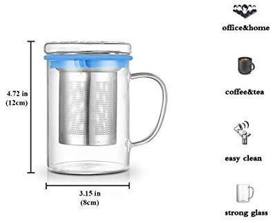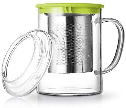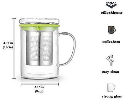 Tomotime 13.5 oz Borosilicate Glass Tea Cups Coffee Mug Cup (with glass lid) Green